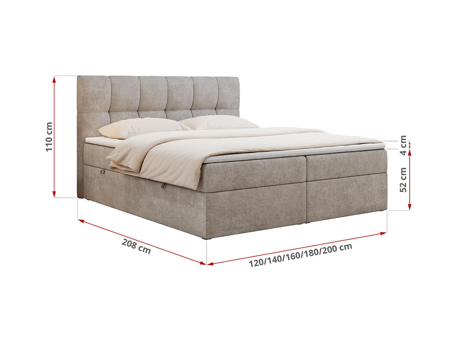 Boxspringbett RICO, Doppelbett mit Matratze, zwei Bettkästen, Bett mit Kopfteil - 140x200 cm - H4 - Beige Stukture