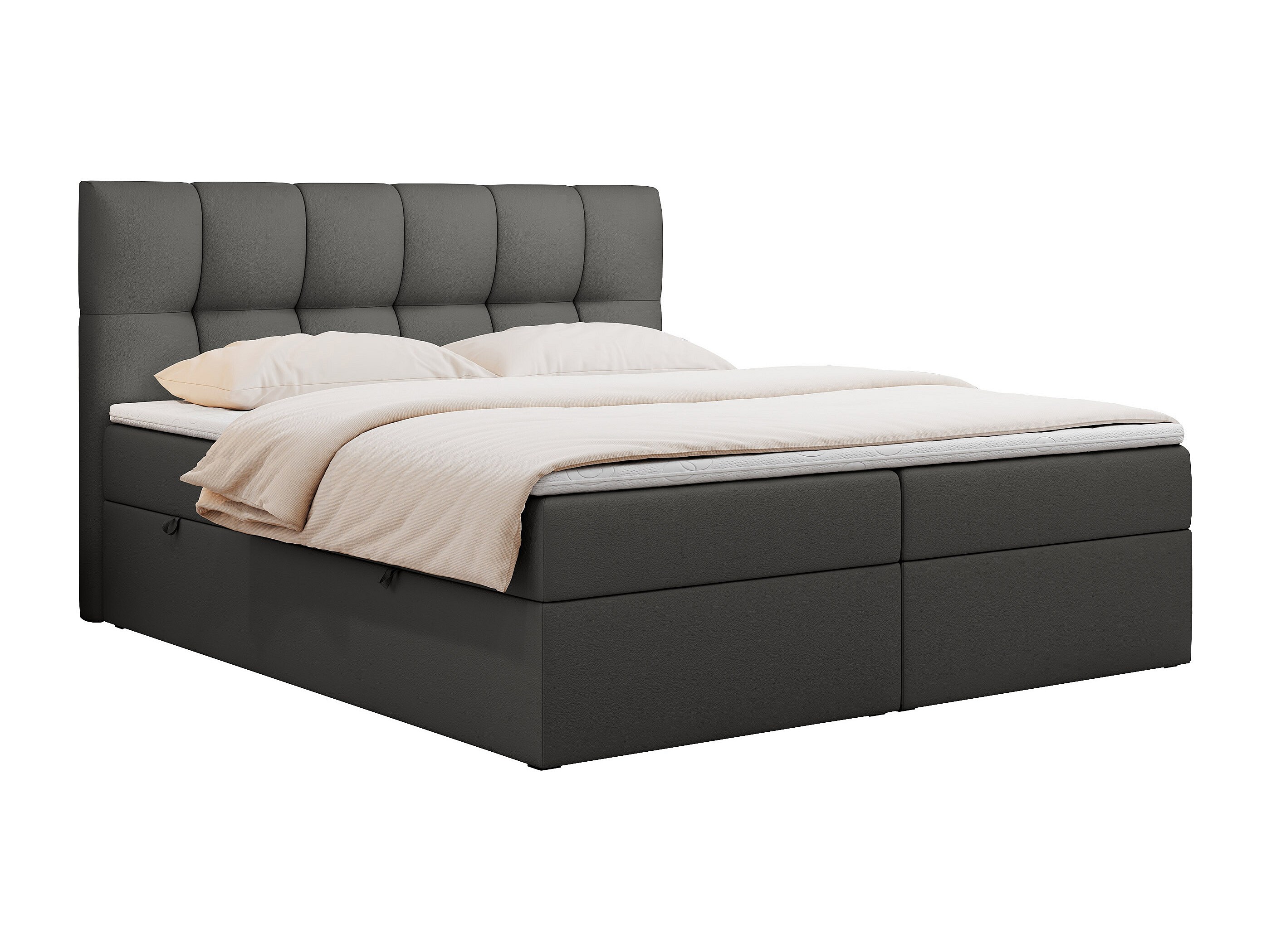Boxspringbett RICO, Doppelbett mit Matratze, zwei Bettkästen, Bett mit Kopfteil - 140x200 cm - H4 - Dunkelgrau Kunstleder