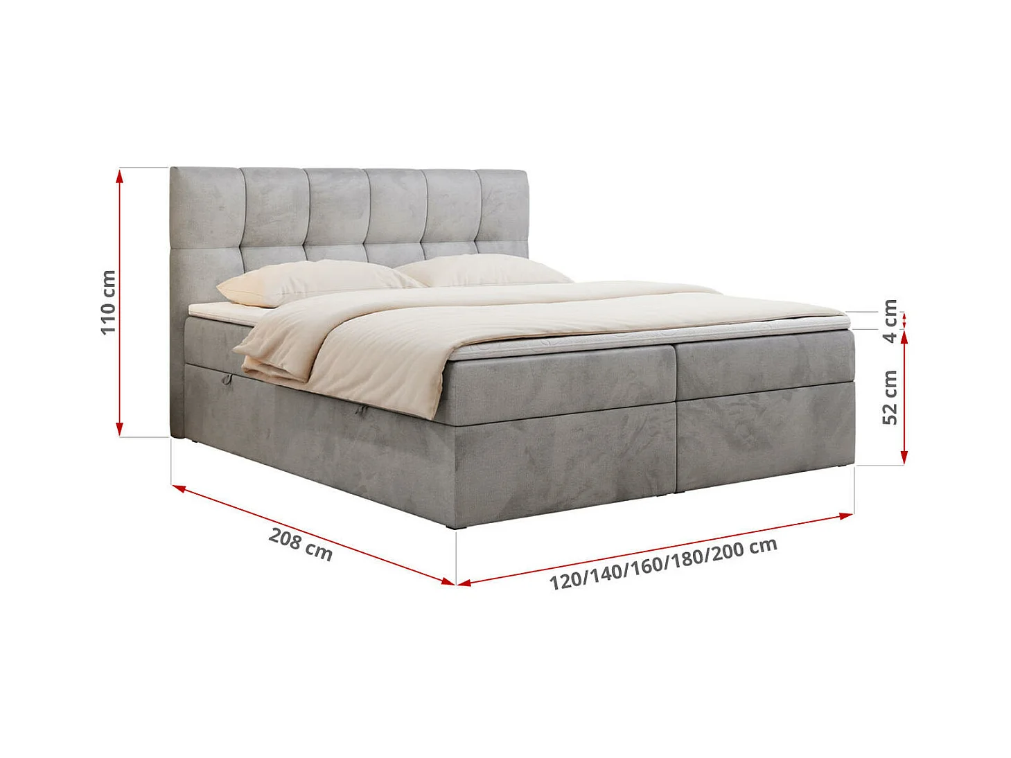 Boxspringbett RICO, Doppelbett mit Matratze, zwei Bettkästen, Bett mit Kopfteil - 140x200 cm - H4 - Hellgrau Velvet