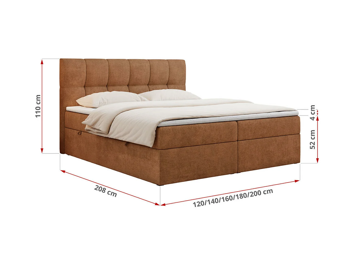 Boxspringbett RICO, Doppelbett mit Matratze, zwei Bettkästen, Bett mit Kopfteil - 140x200 cm - H4 - Orange Stukture