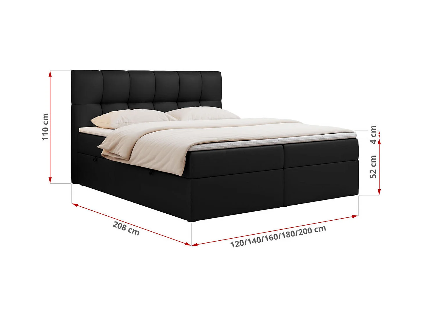 Boxspringbett RICO, Doppelbett mit Matratze, zwei Bettkästen, Bett mit Kopfteil - 140x200 cm - H4 - Schwarz Kunstleder