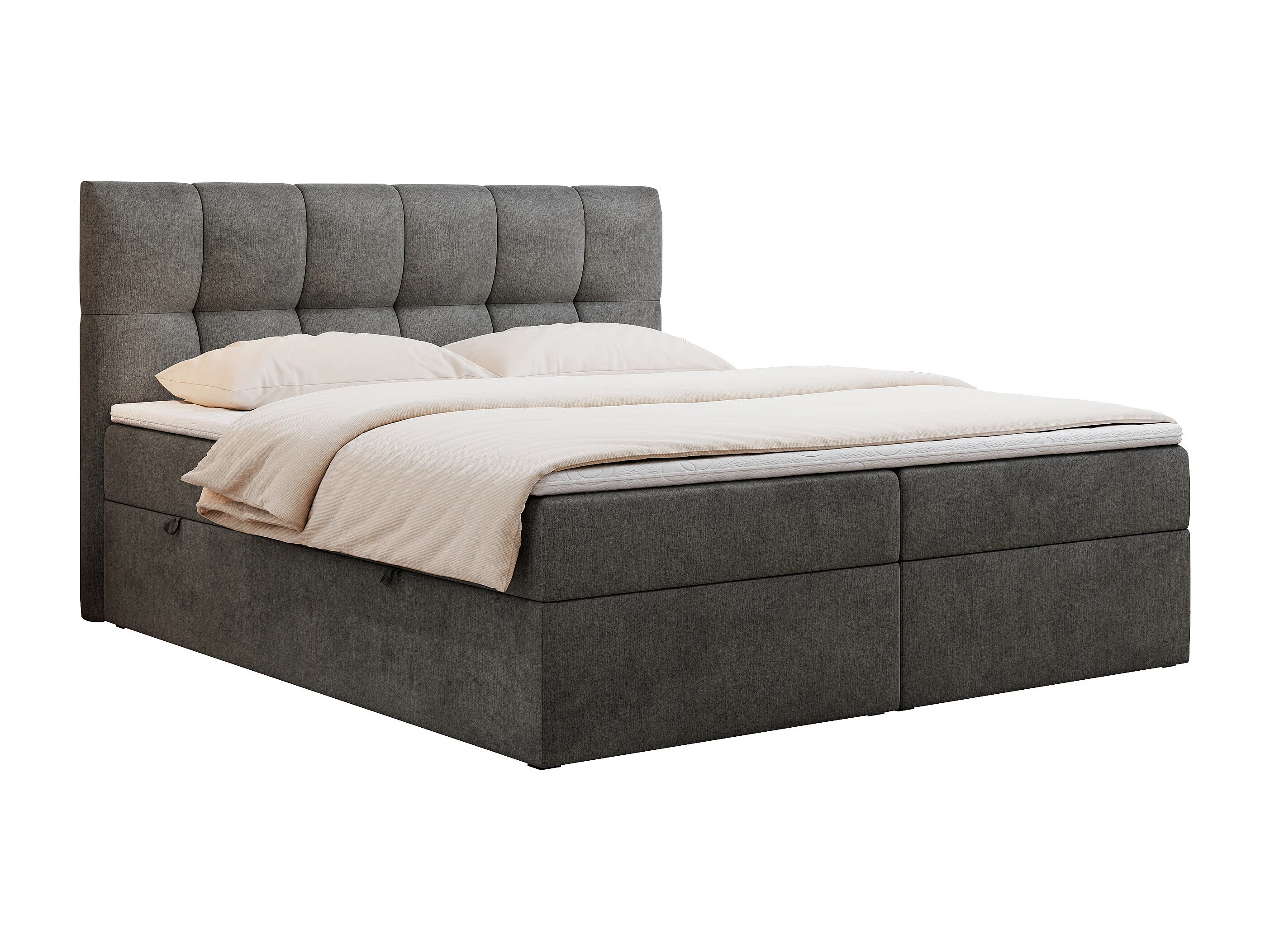 Boxspringbett RICO, Doppelbett mit Matratze, zwei Bettkästen, Bett mit Kopfteil - 160x200 cm - H4 - Dunkelgrau Velvet