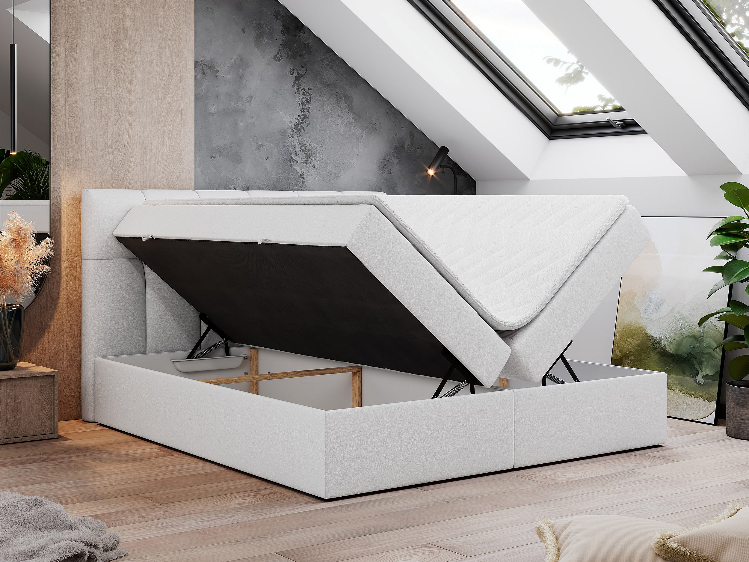 Boxspringbett RICO, Doppelbett mit Matratze, zwei Bettkästen, Bett mit Kopfteil - 180x200 cm - H4 - Weiß Kunstleder