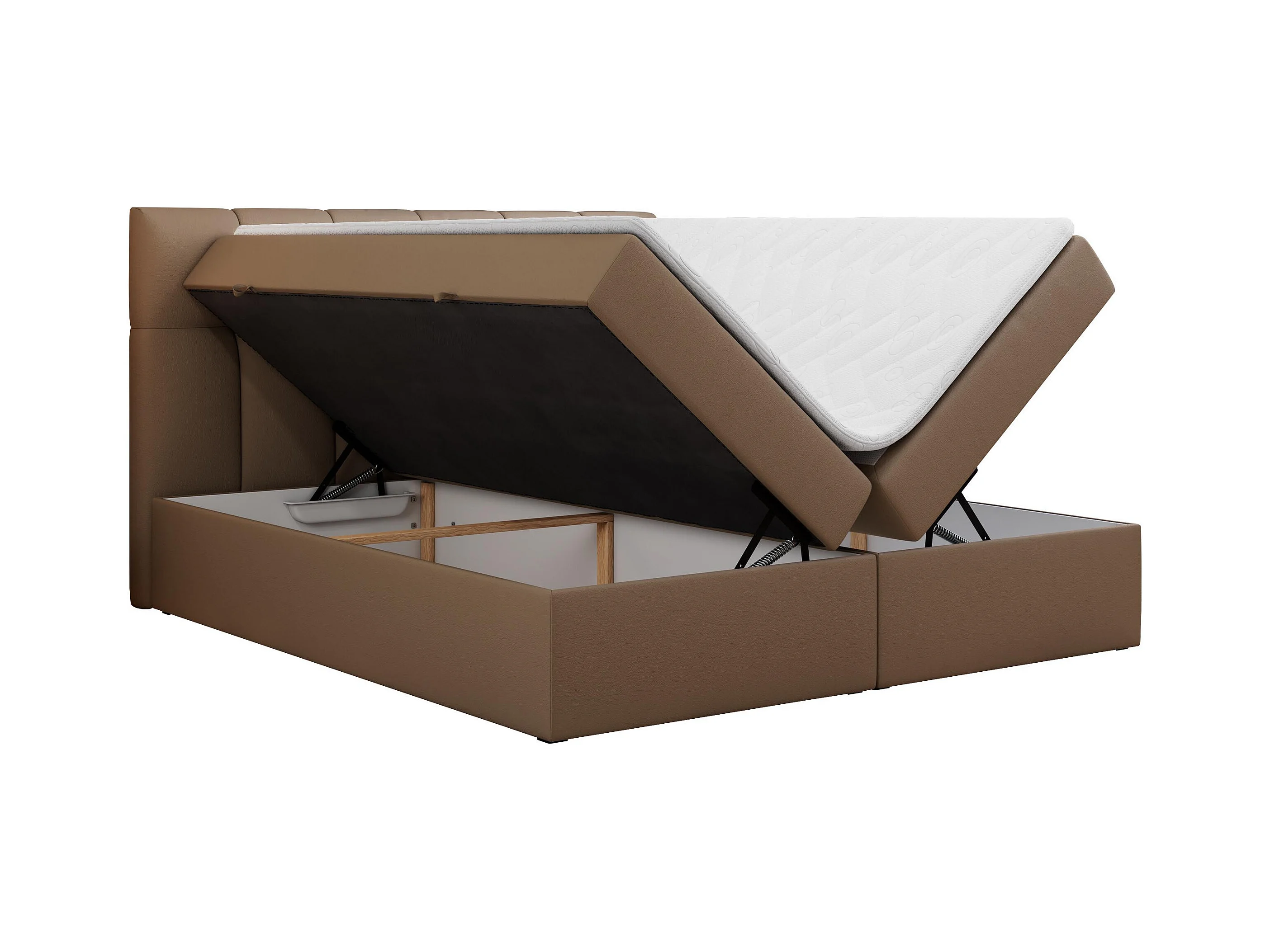 Boxspringbett RICO, Doppelbett mit Matratze, zwei Bettkästen, Bett mit Kopfteil - 200x200 cm - H4 - Braun Kunstleder