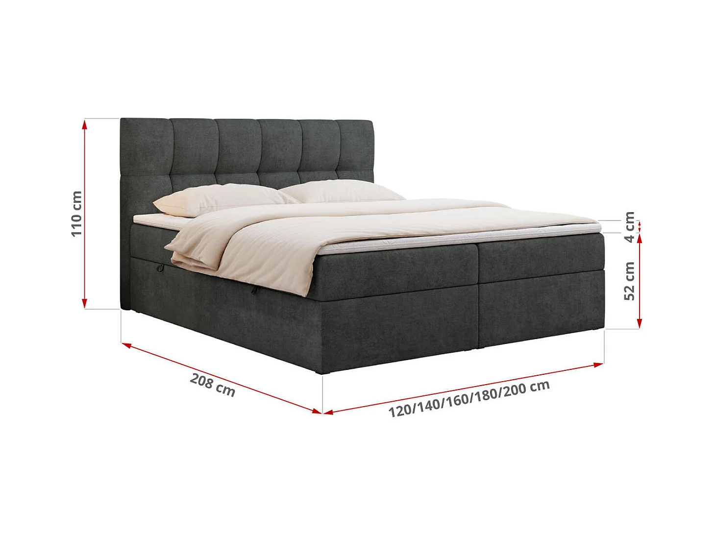 Boxspringbett RICO, Doppelbett mit Matratze, zwei Bettkästen, Bett mit Kopfteil - 200x200 cm - H4 - Dunkelgrau Stukture