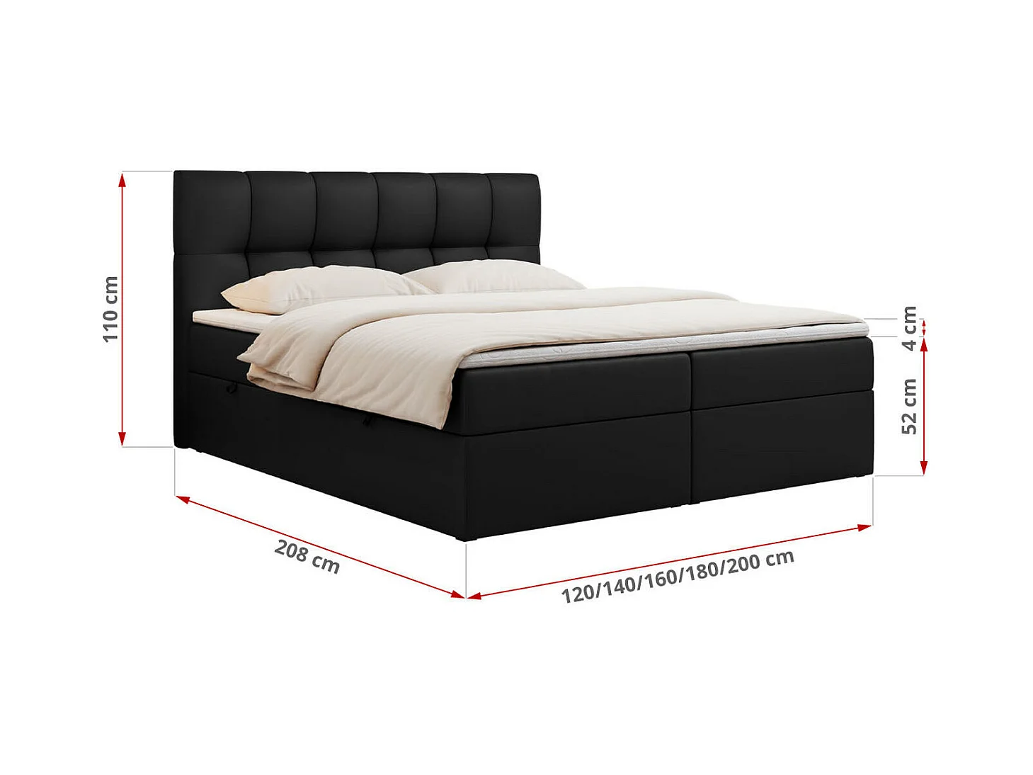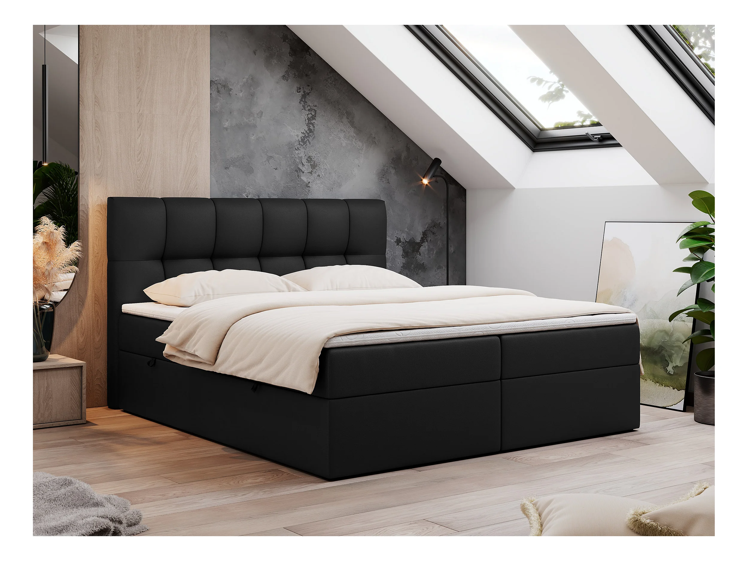Boxspringbett RICO, Doppelbett mit Matratze, zwei Bettkästen, Bett mit Kopfteil - 200x200 cm - H4 - Schwarz Kunstleder