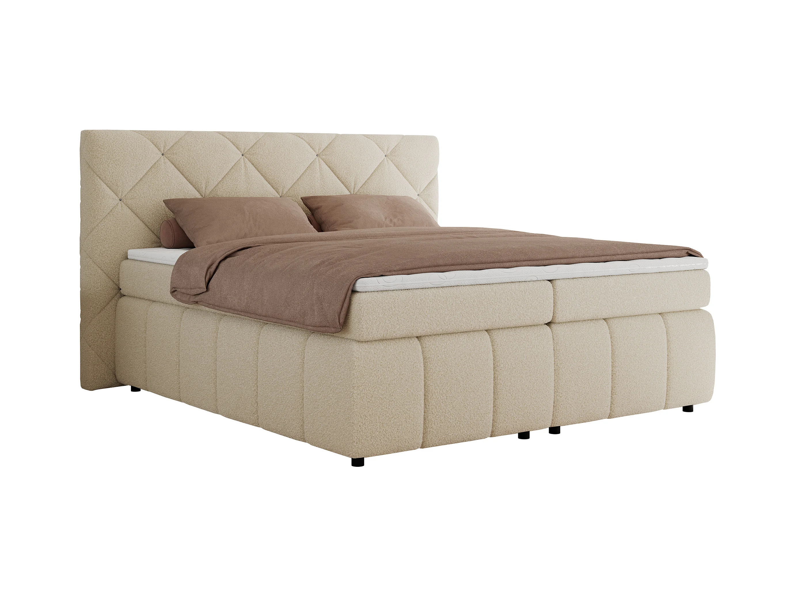 Boxspringbett RITA - Set mit Kopfteil, Multipocket-Matratze und Topper, Doppelbett für Schlafzimmer - 140x200 cm - H3 - Beige Boucle