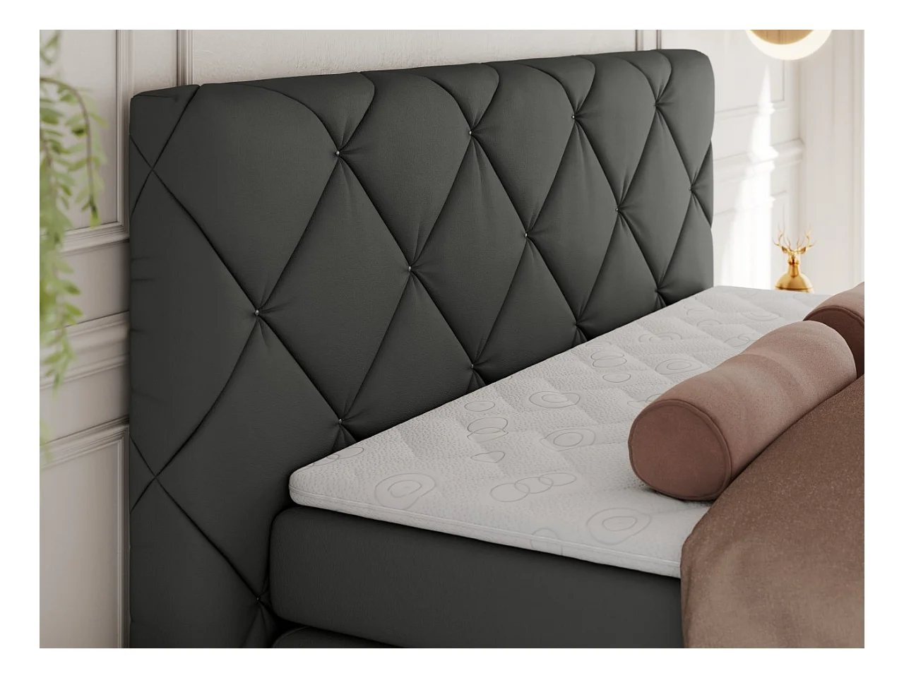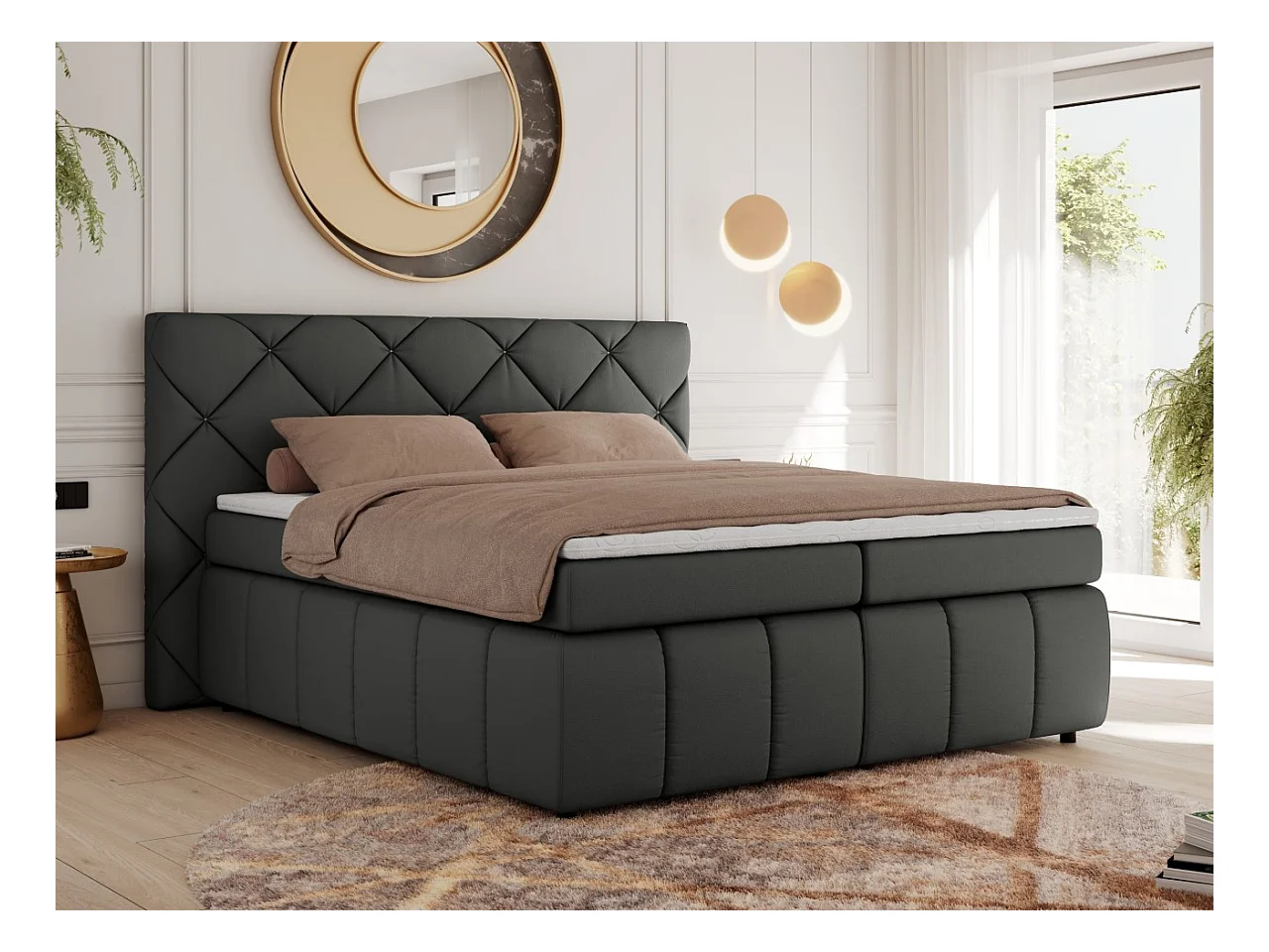 Boxspringbett RITA - Set mit Kopfteil, Multipocket-Matratze und Topper, Doppelbett für Schlafzimmer - 140x200 cm - H3 - Dunkelgrau Kunstleder
