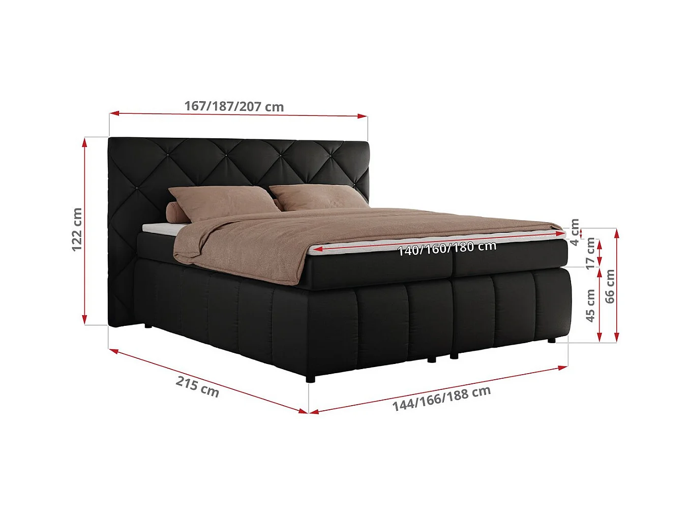 Boxspringbett RITA - Set mit Kopfteil, Multipocket-Matratze und Topper, Doppelbett für Schlafzimmer - 140x200 cm - H4 - Schwarz Kunstleder
