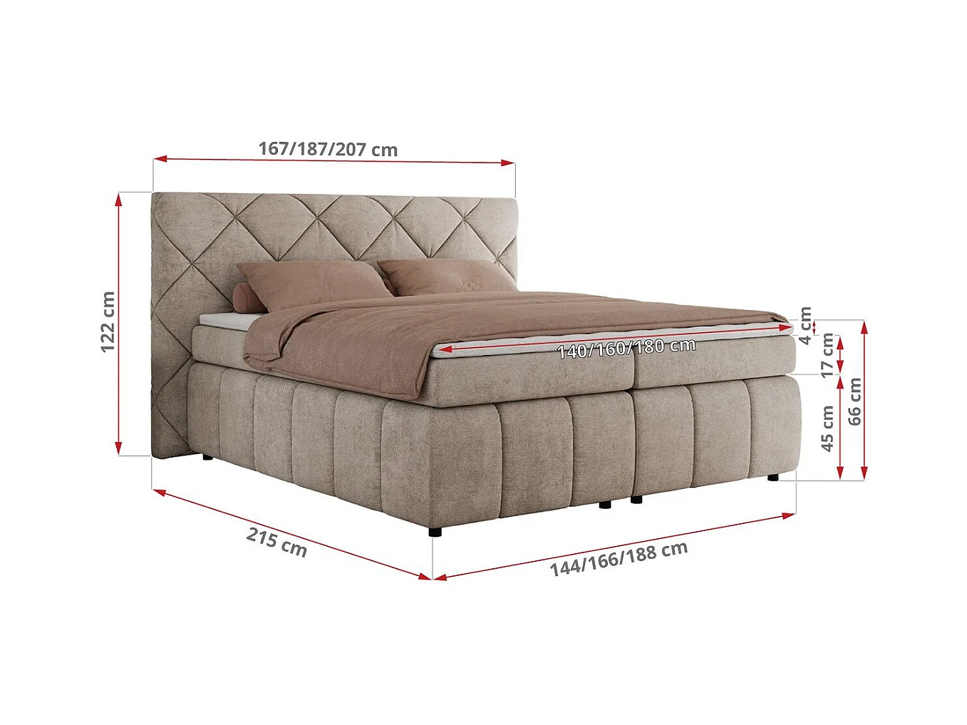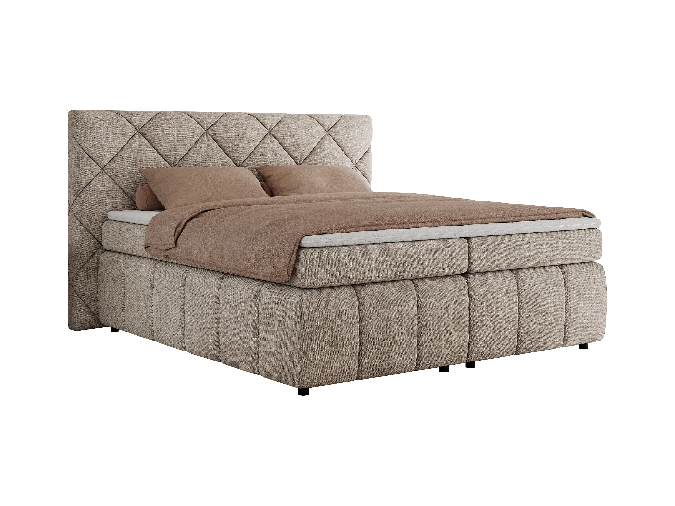 Boxspringbett RITA - Set mit Kopfteil, Multipocket-Matratze und Topper, Doppelbett für Schlafzimmer - 160x200 cm - H3 - Beige Strukture