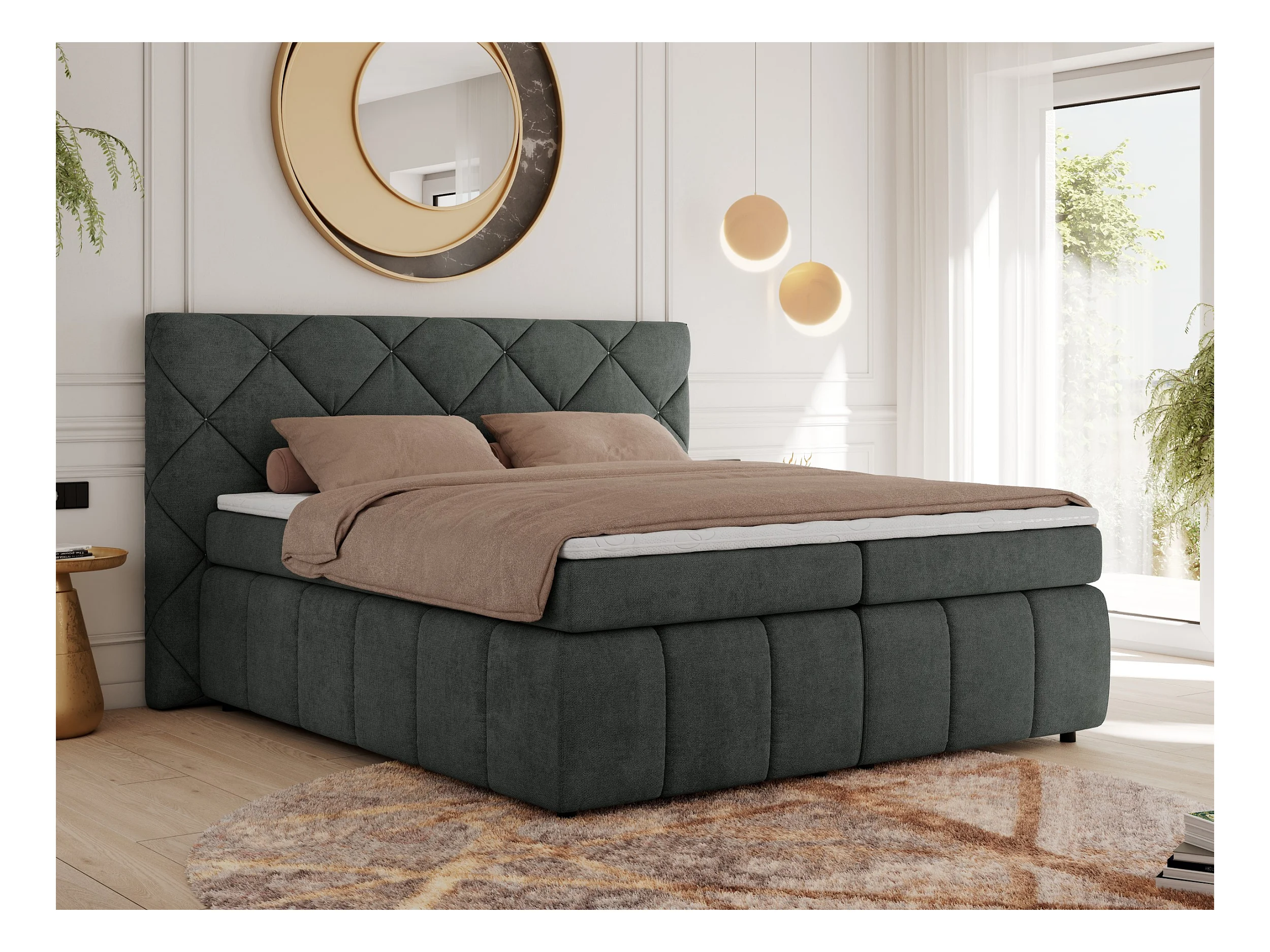 Boxspringbett RITA - Set mit Kopfteil, Multipocket-Matratze und Topper, Doppelbett für Schlafzimmer - 160x200 cm - H3 - Dunkelgrau Strukture