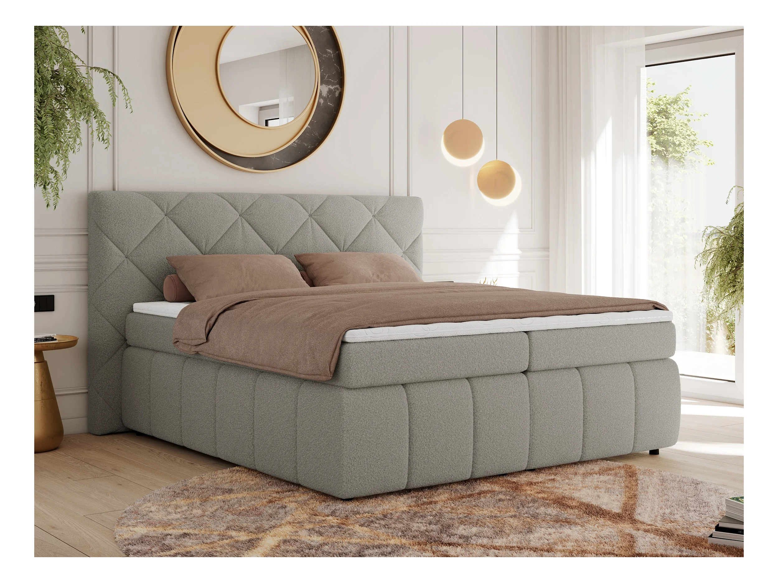Boxspringbett RITA - Set mit Kopfteil, Multipocket-Matratze und Topper, Doppelbett für Schlafzimmer - 160x200 cm - H3 - Hellgrau Boucle