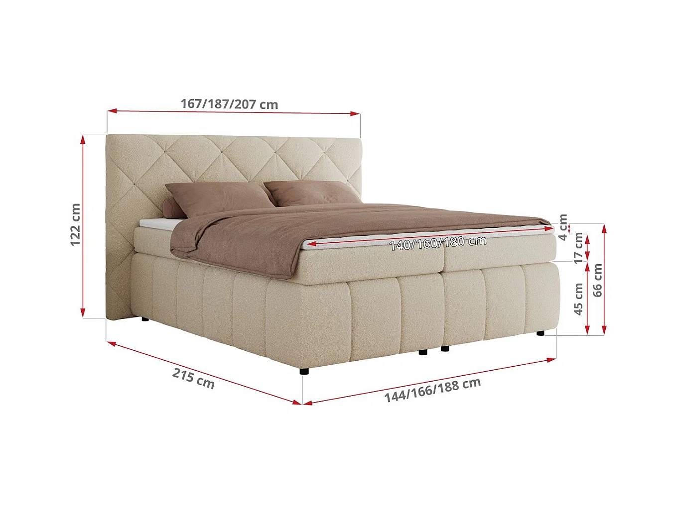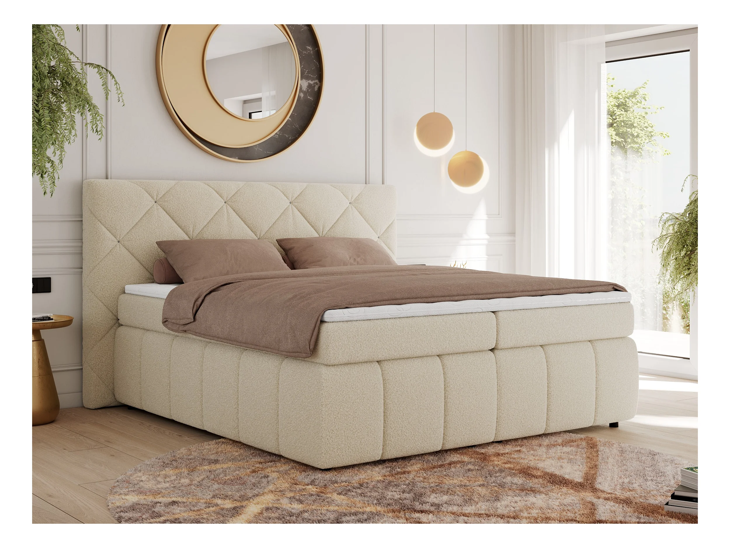 Boxspringbett RITA - Set mit Kopfteil, Multipocket-Matratze und Topper, Doppelbett für Schlafzimmer - 160x200 cm - H4 - Beige Boucle