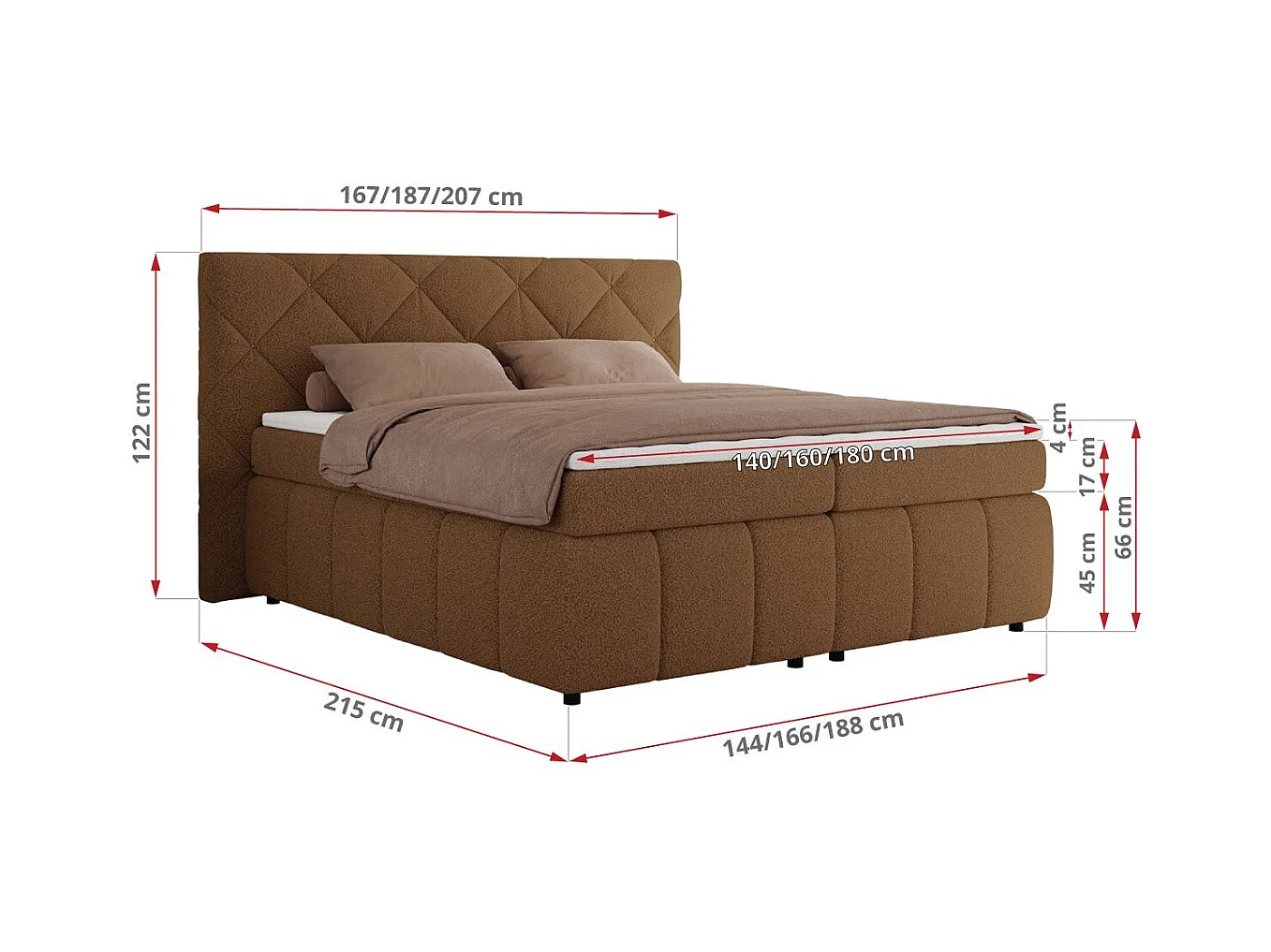 Boxspringbett RITA - Set mit Kopfteil, Multipocket-Matratze und Topper, Doppelbett für Schlafzimmer - 160x200 cm - H4 - Braun Boucle