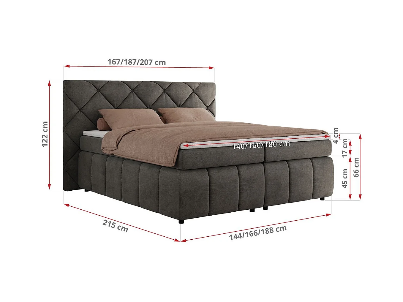 Boxspringbett RITA - Set mit Kopfteil, Multipocket-Matratze und Topper, Doppelbett für Schlafzimmer - 160x200 cm - H4 - Dunkelgrau Velvet