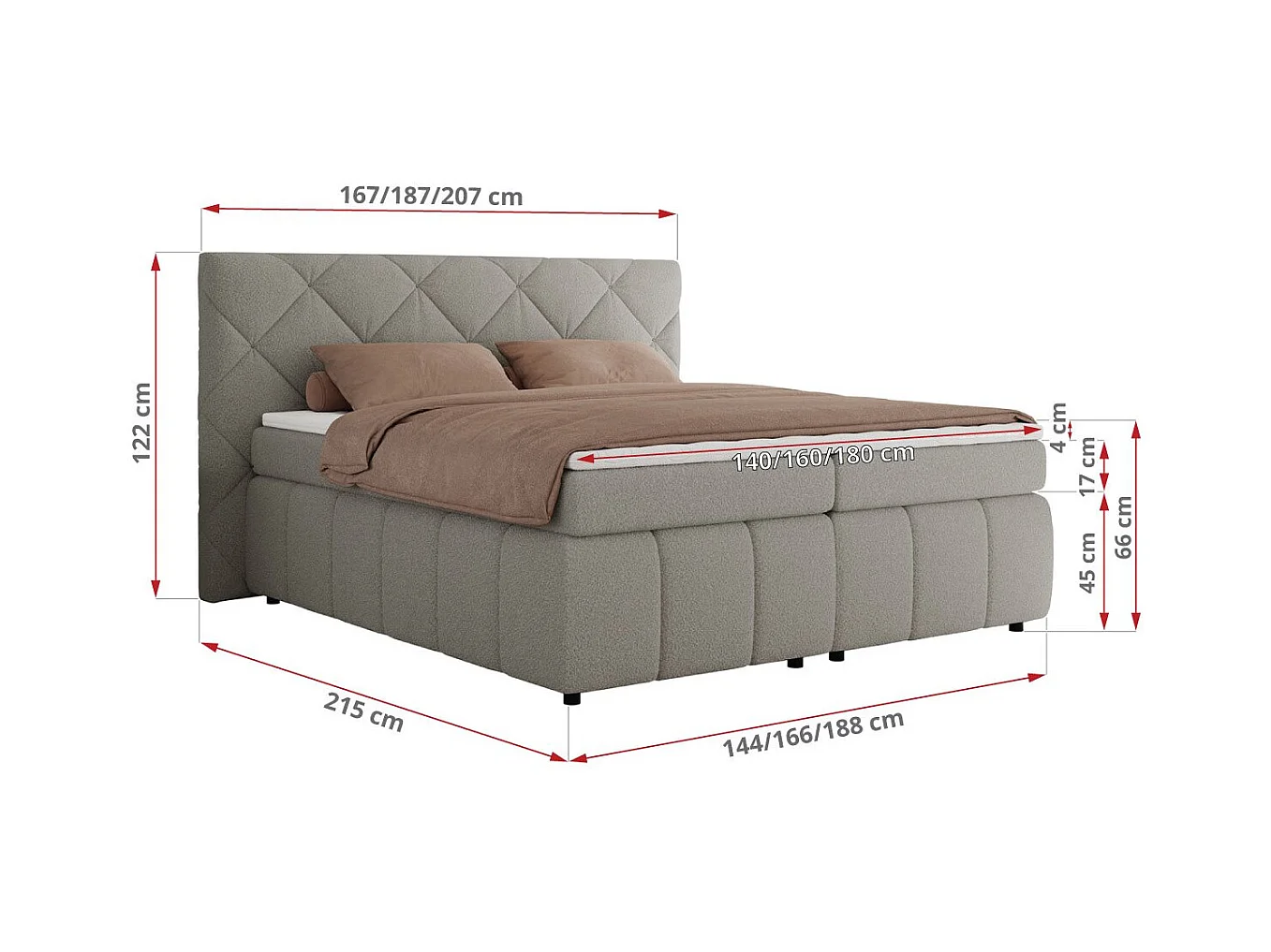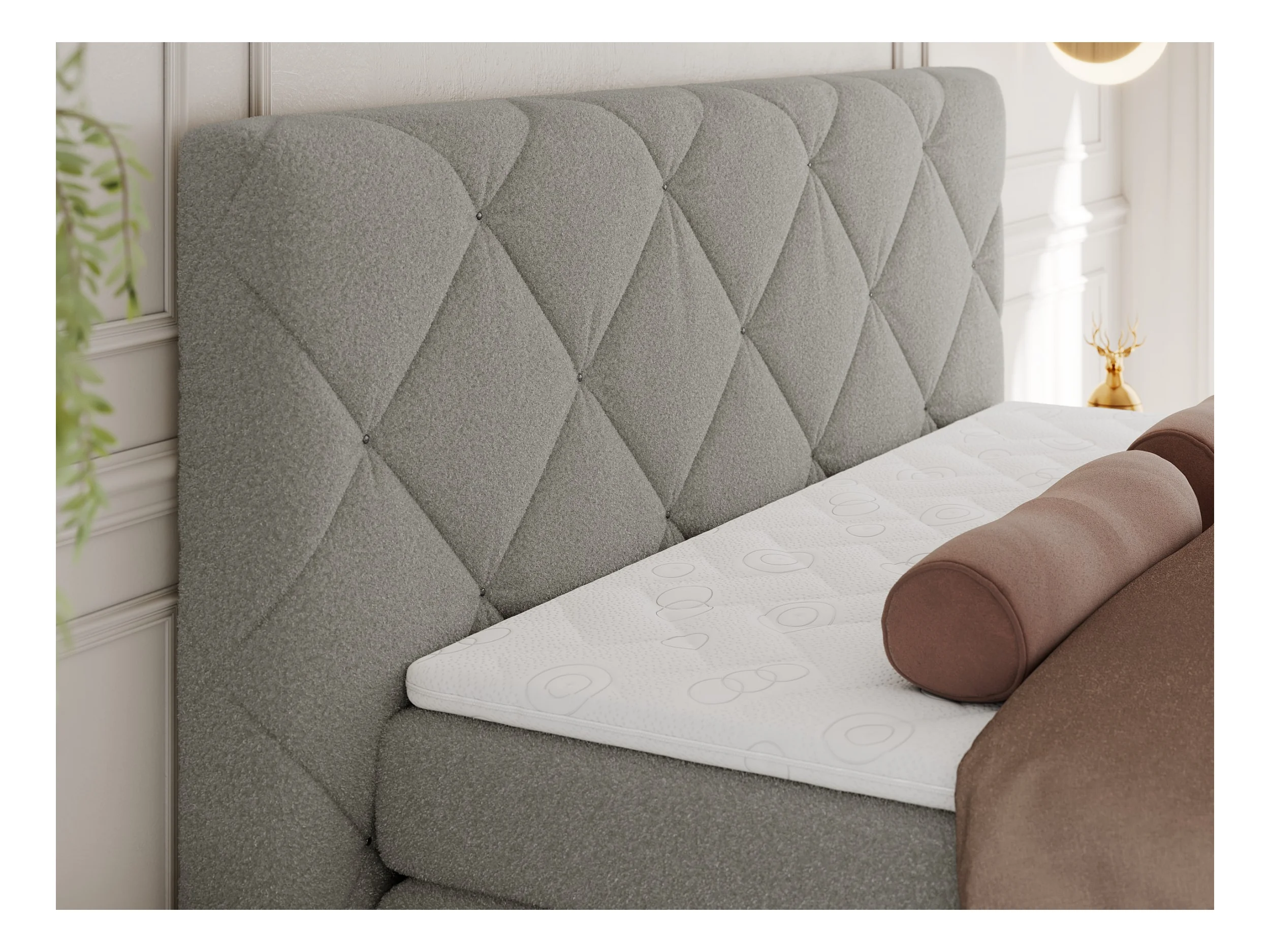 Boxspringbett RITA - Set mit Kopfteil, Multipocket-Matratze und Topper, Doppelbett für Schlafzimmer - 180x200 cm - H3 - Hellgrau Boucle