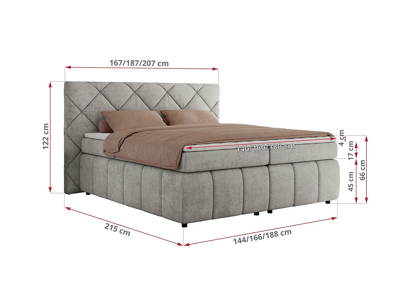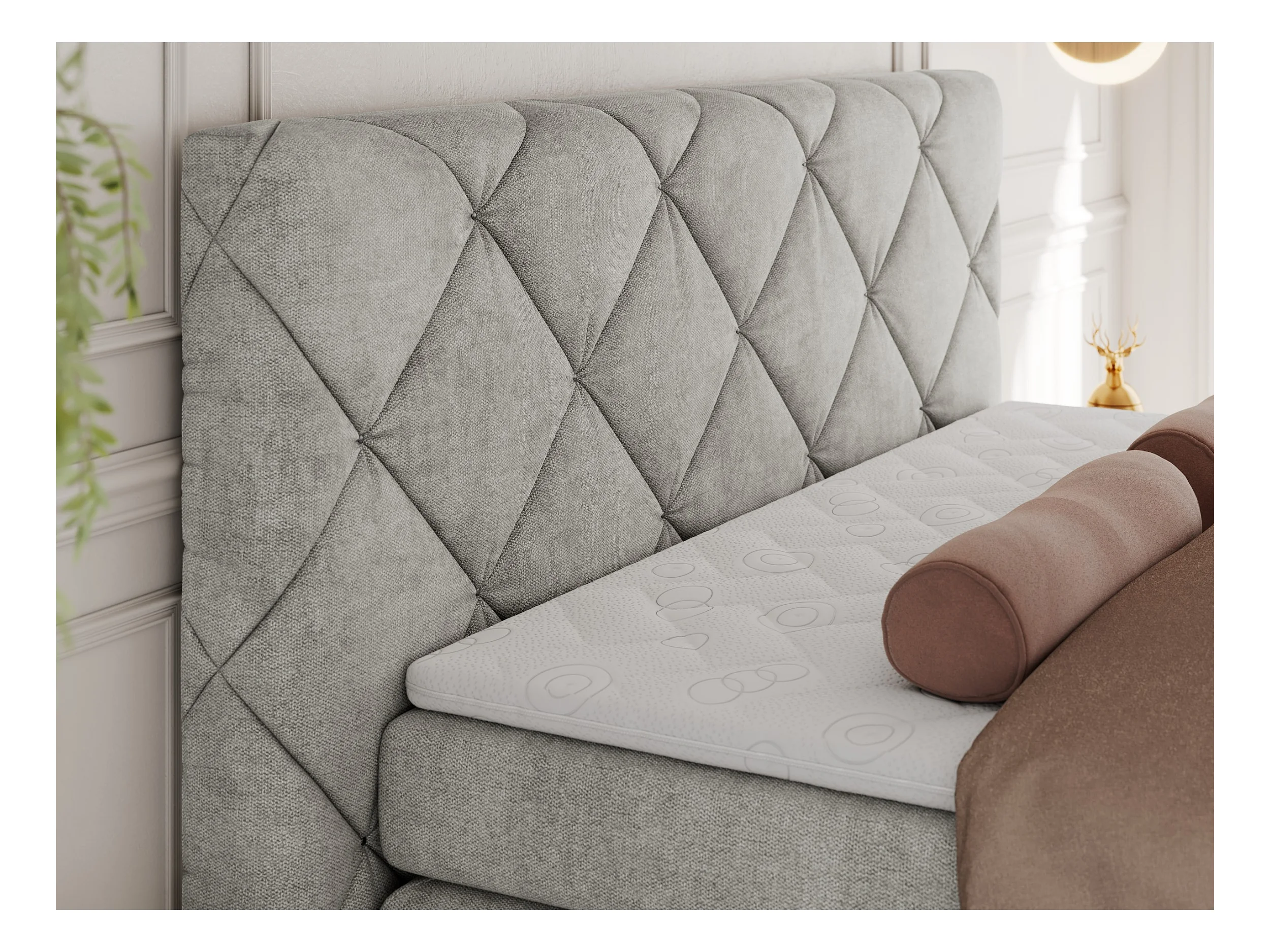 Boxspringbett RITA - Set mit Kopfteil, Multipocket-Matratze und Topper, Doppelbett für Schlafzimmer - 180x200 cm - H3 - Hellgrau Strukture