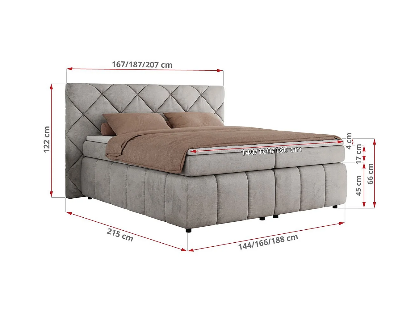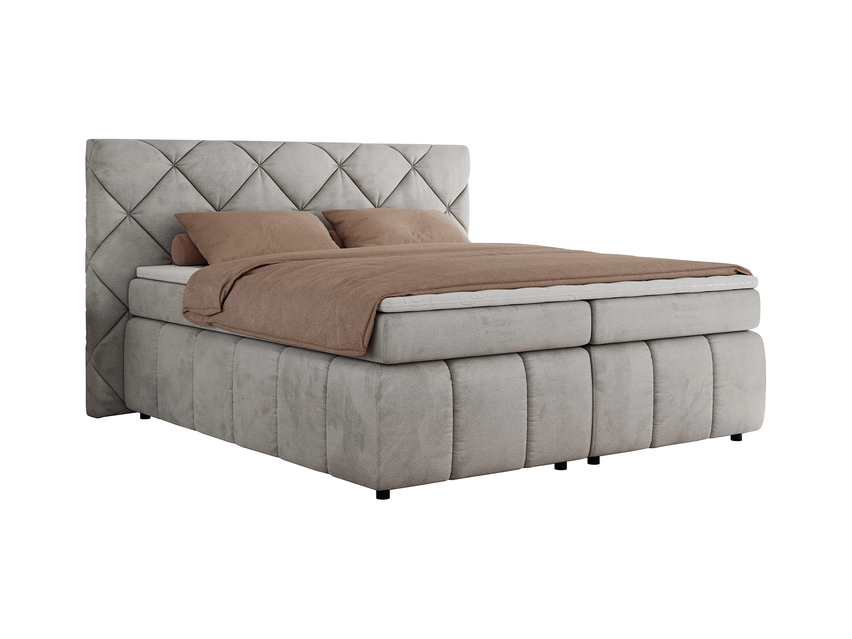 Boxspringbett RITA - Set mit Kopfteil, Multipocket-Matratze und Topper, Doppelbett für Schlafzimmer - 180x200 cm - H3 - Hellgrau Velvet