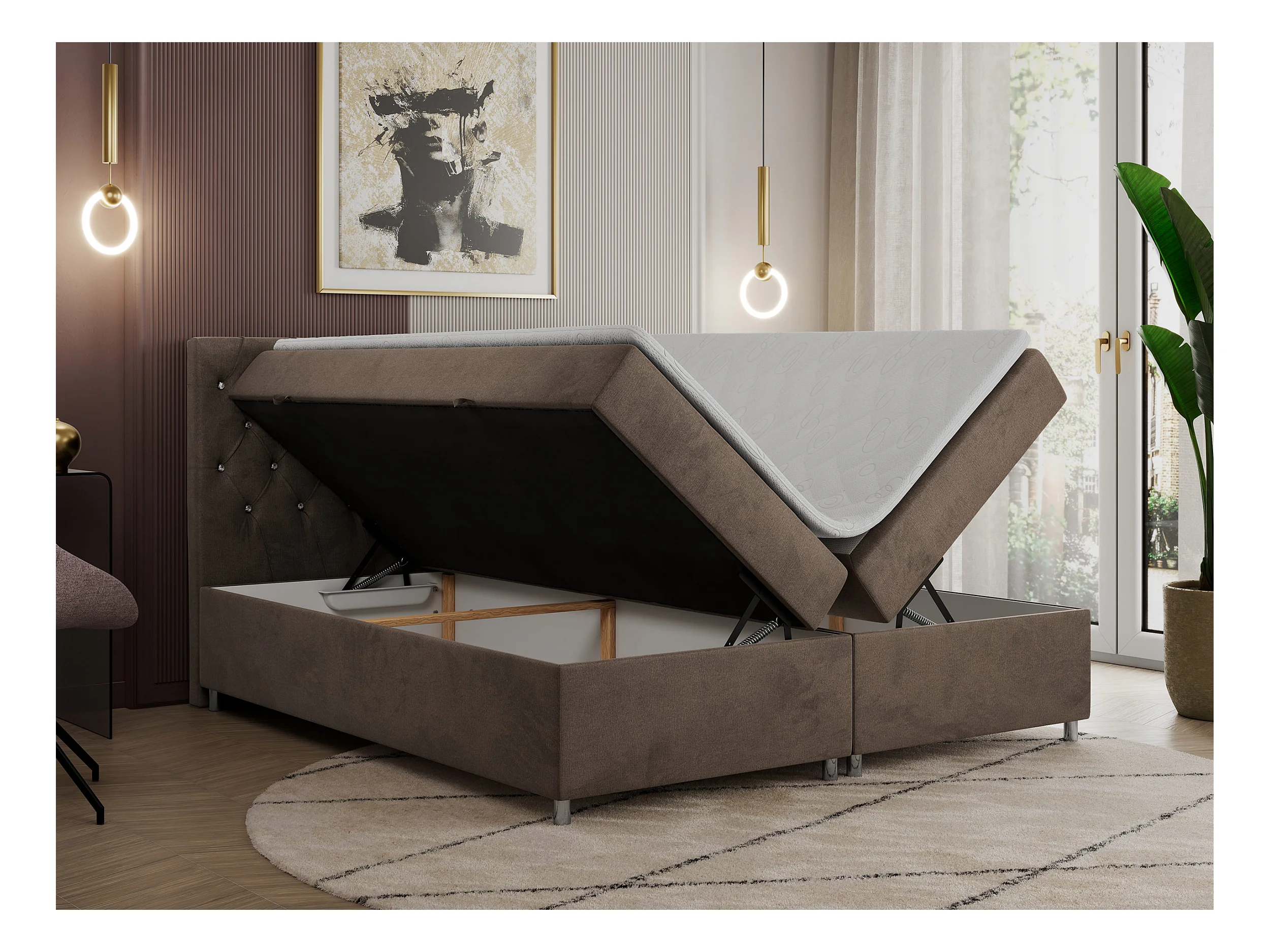 Boxspringbett ROMA mit gestepptem Kopfteil, Multipocket-Matratze, dekorative Füße - 120x200 cm - H3 - Braun Velvet