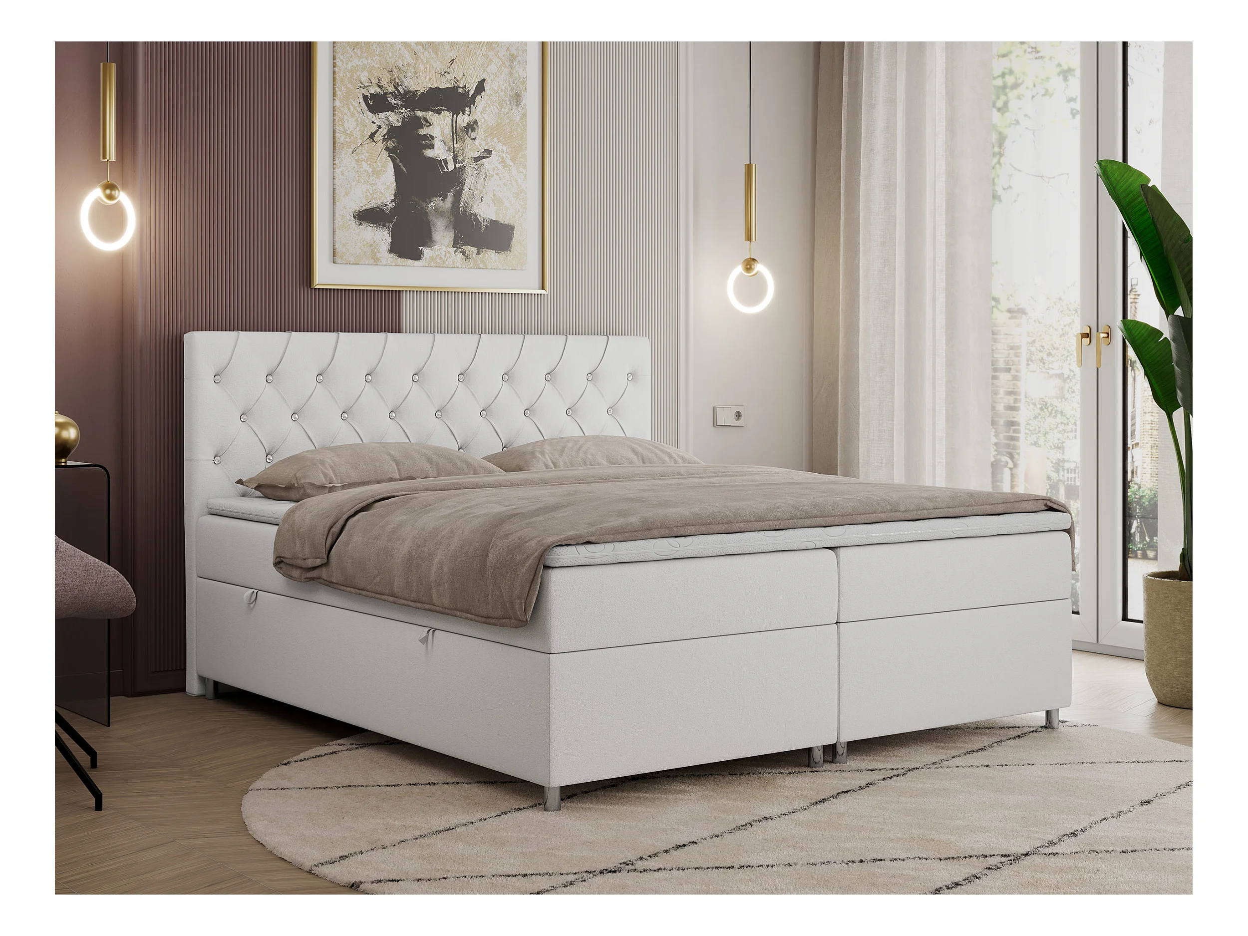 Boxspringbett ROMA mit gestepptem Kopfteil, Multipocket-Matratze, dekorative Füße - 120x200 cm - H4 - Weiß Kunstleder