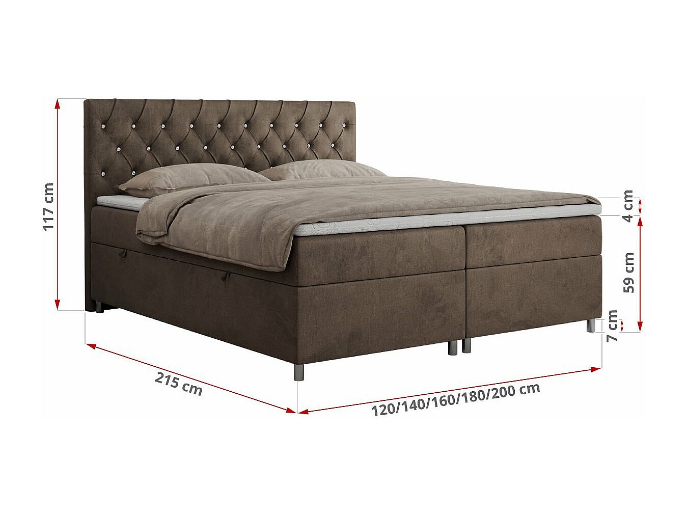 Boxspringbett ROMA mit gestepptem Kopfteil, Multipocket-Matratze, dekorative Füße - 180x200 cm - H3 - Braun Velvet