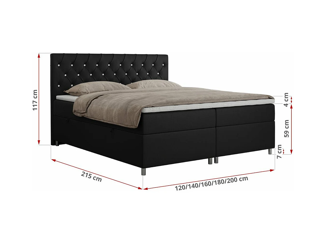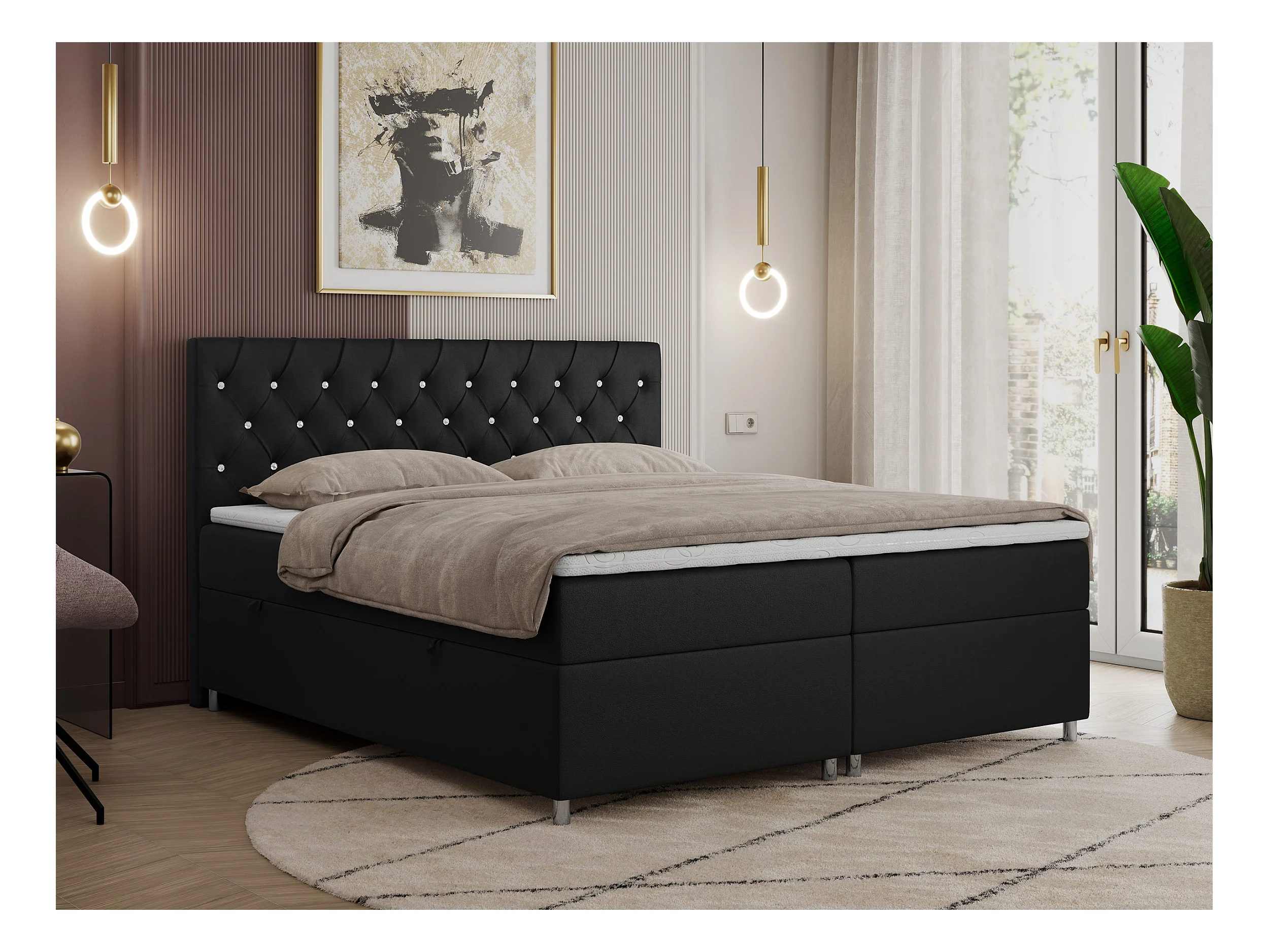 Boxspringbett ROMA mit gestepptem Kopfteil, Multipocket-Matratze, dekorative Füße - 180x200 cm - H4 - Schwarz Kunstleder