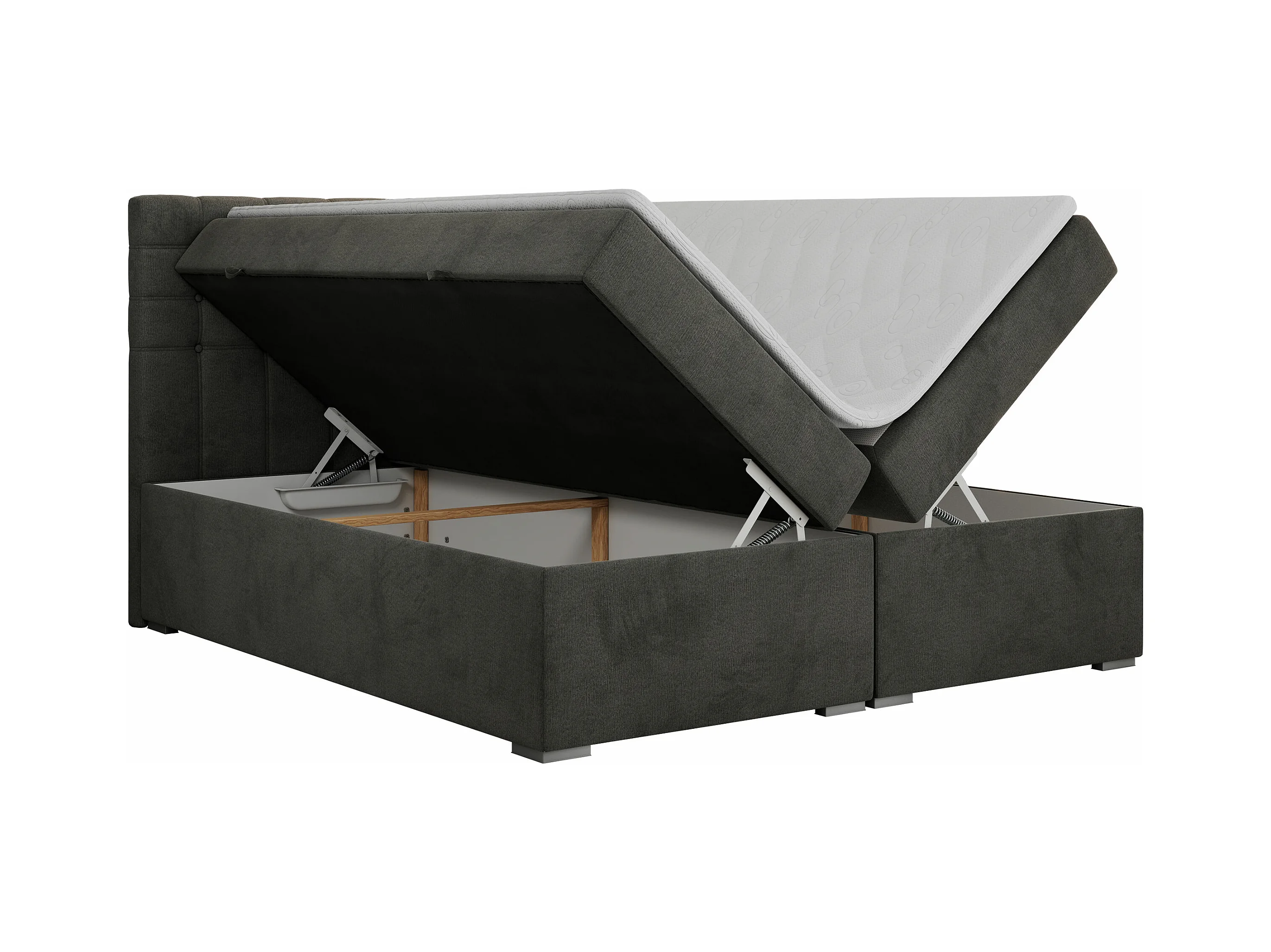 Boxspringbett SUSAN - mit gestepptem Kopfteil, zwei Bettkästen und Topper, gepolstertes Schlafzimmerbett - 120x200 cm - H3 - Dunkelgrau Velvet