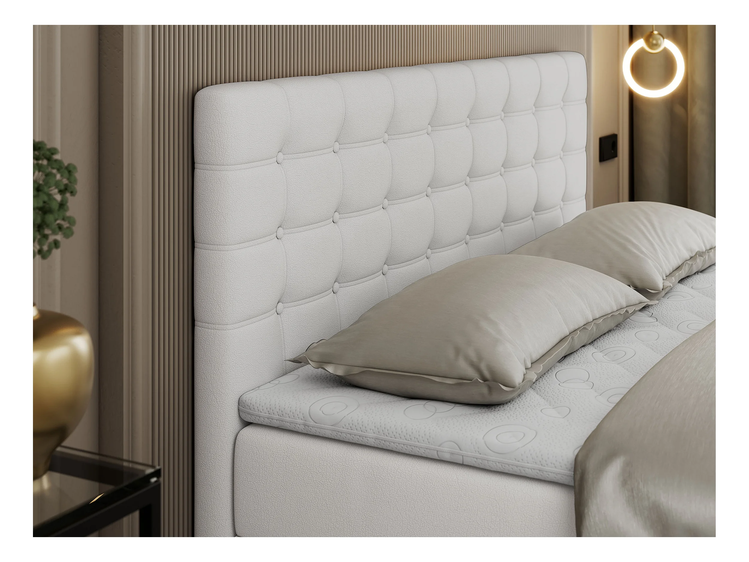 Boxspringbett SUSAN - mit gestepptem Kopfteil, zwei Bettkästen und Topper, gepolstertes Schlafzimmerbett - 120x200 cm - H4 - Weiß Kunstleder