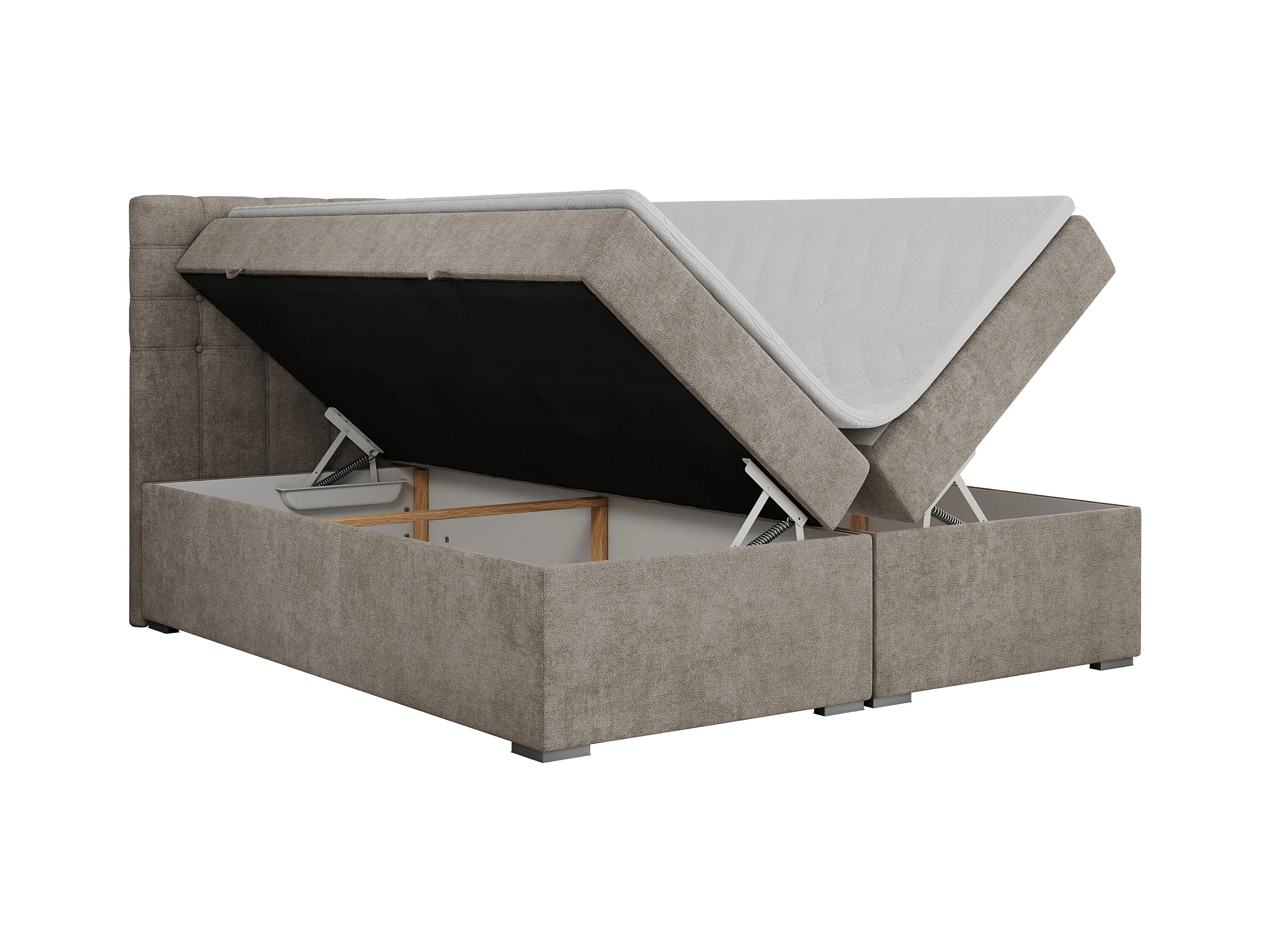 Boxspringbett SUSAN - mit gestepptem Kopfteil, zwei Bettkästen und Topper, gepolstertes Schlafzimmerbett - 140x200 cm - H3 - Beige Stukture