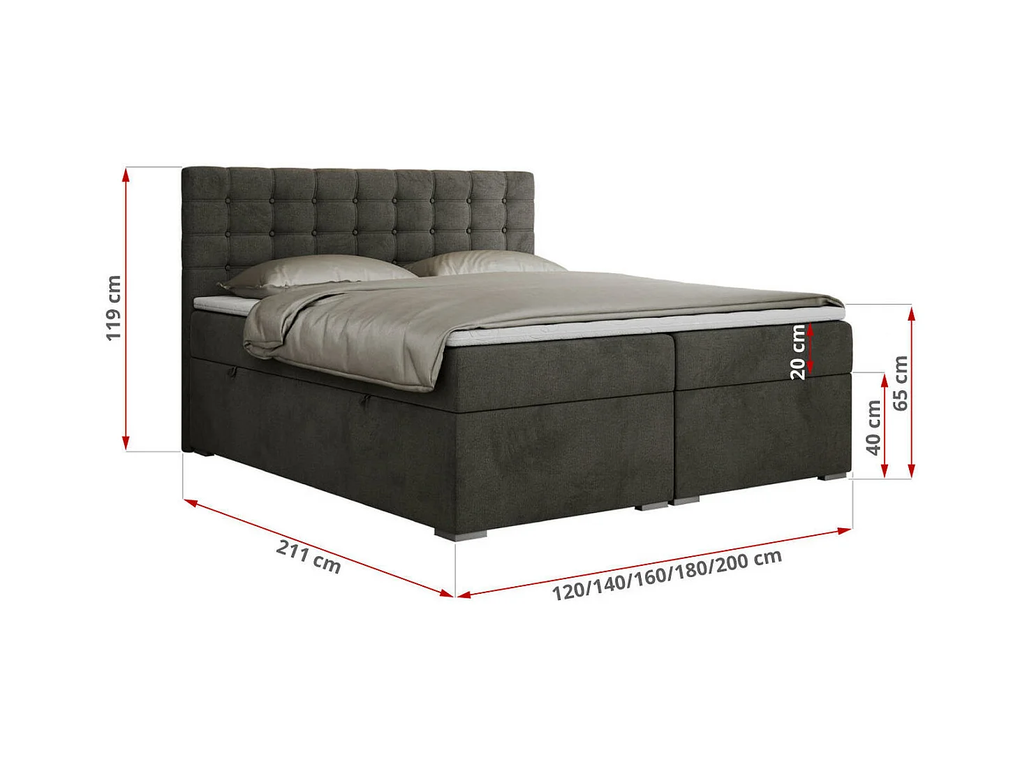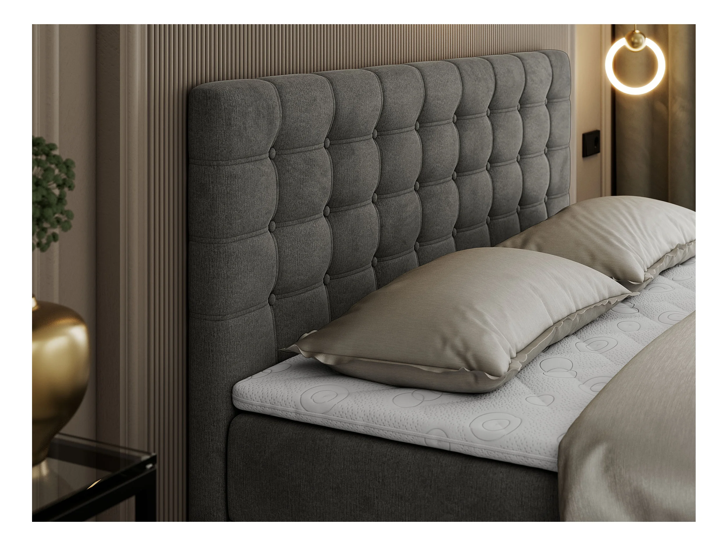 Boxspringbett SUSAN - mit gestepptem Kopfteil, zwei Bettkästen und Topper, gepolstertes Schlafzimmerbett - 140x200 cm - H4 - Dunkelgrau Velvet