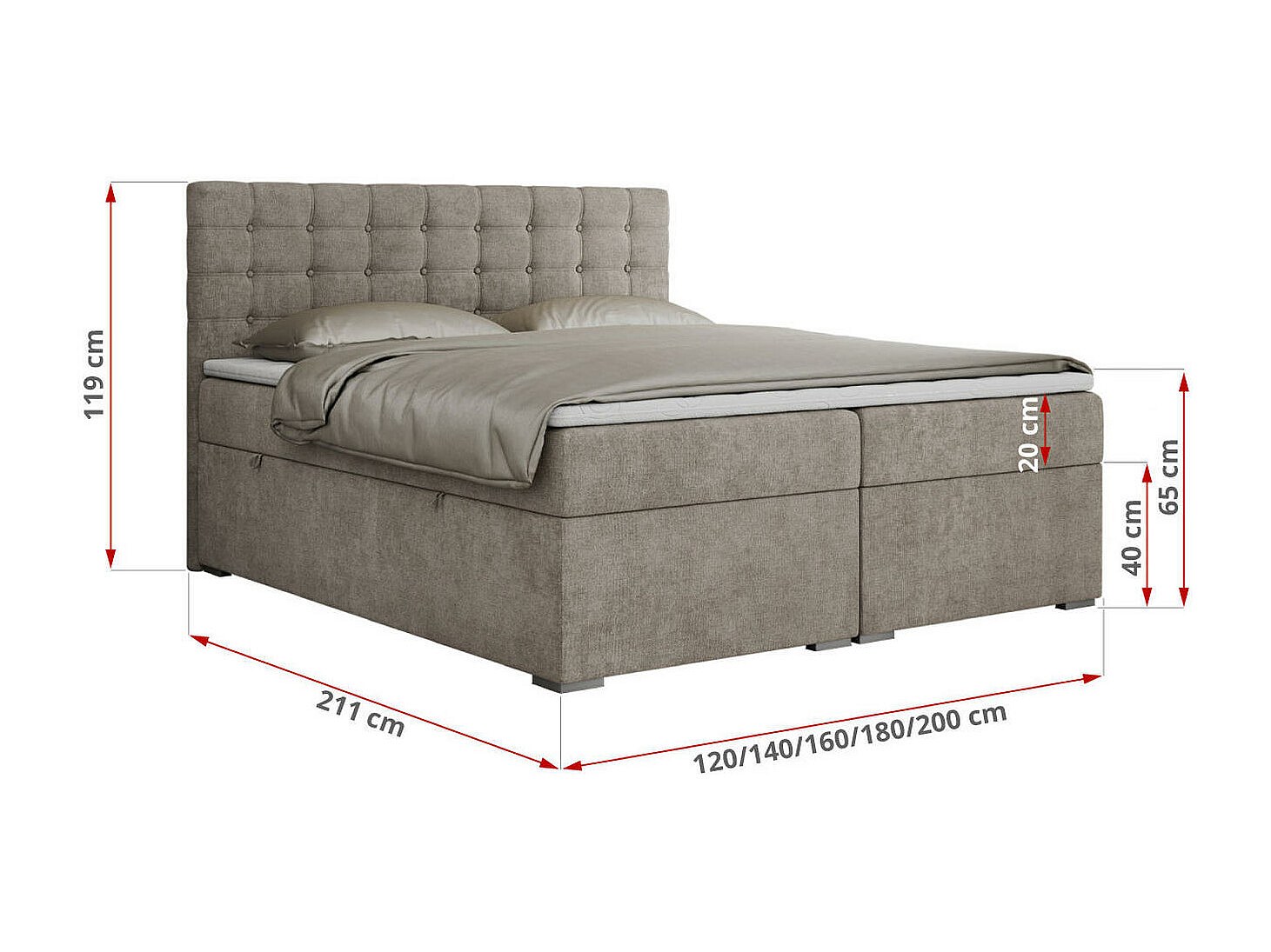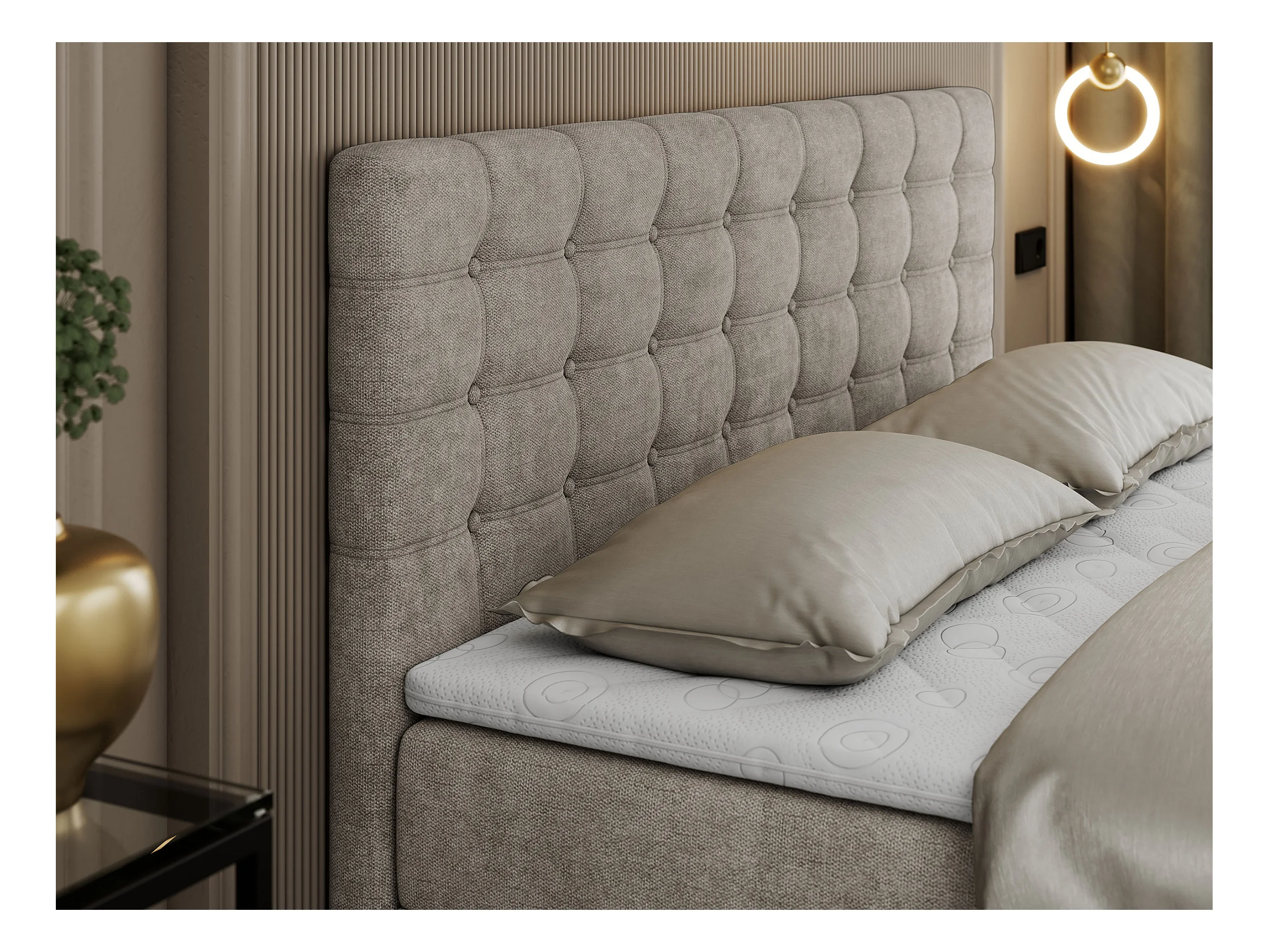 Boxspringbett SUSAN - mit gestepptem Kopfteil, zwei Bettkästen und Topper, gepolstertes Schlafzimmerbett - 160x200 cm - H4 - Beige Stukture