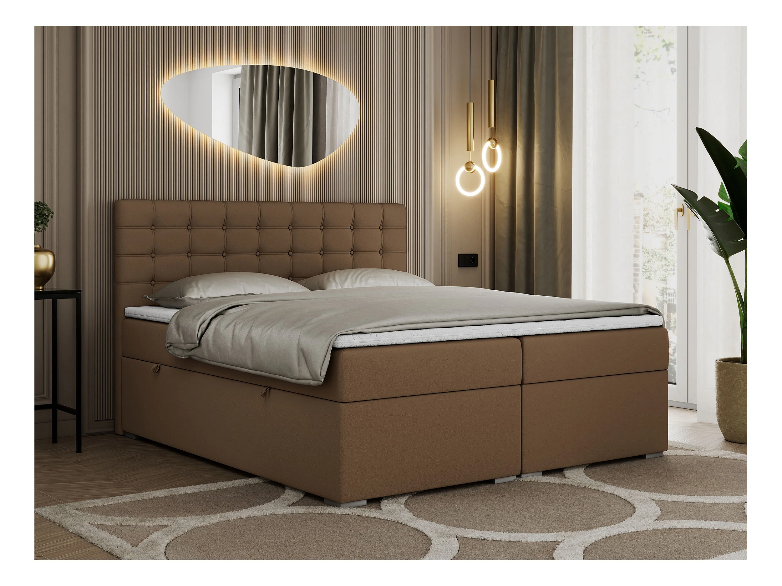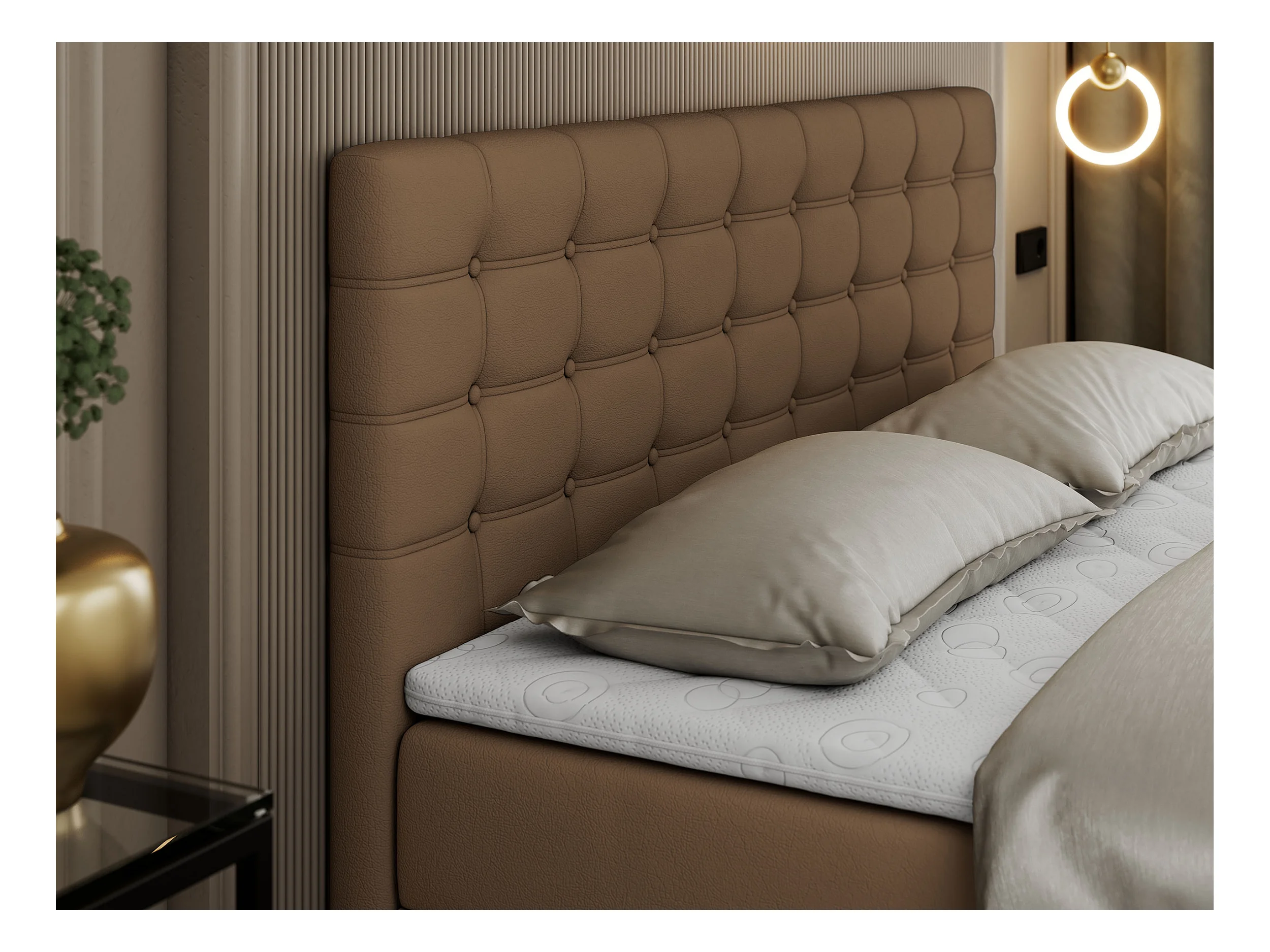 Boxspringbett SUSAN - mit gestepptem Kopfteil, zwei Bettkästen und Topper, gepolstertes Schlafzimmerbett - 160x200 cm - H4 - Braun Kunstleder