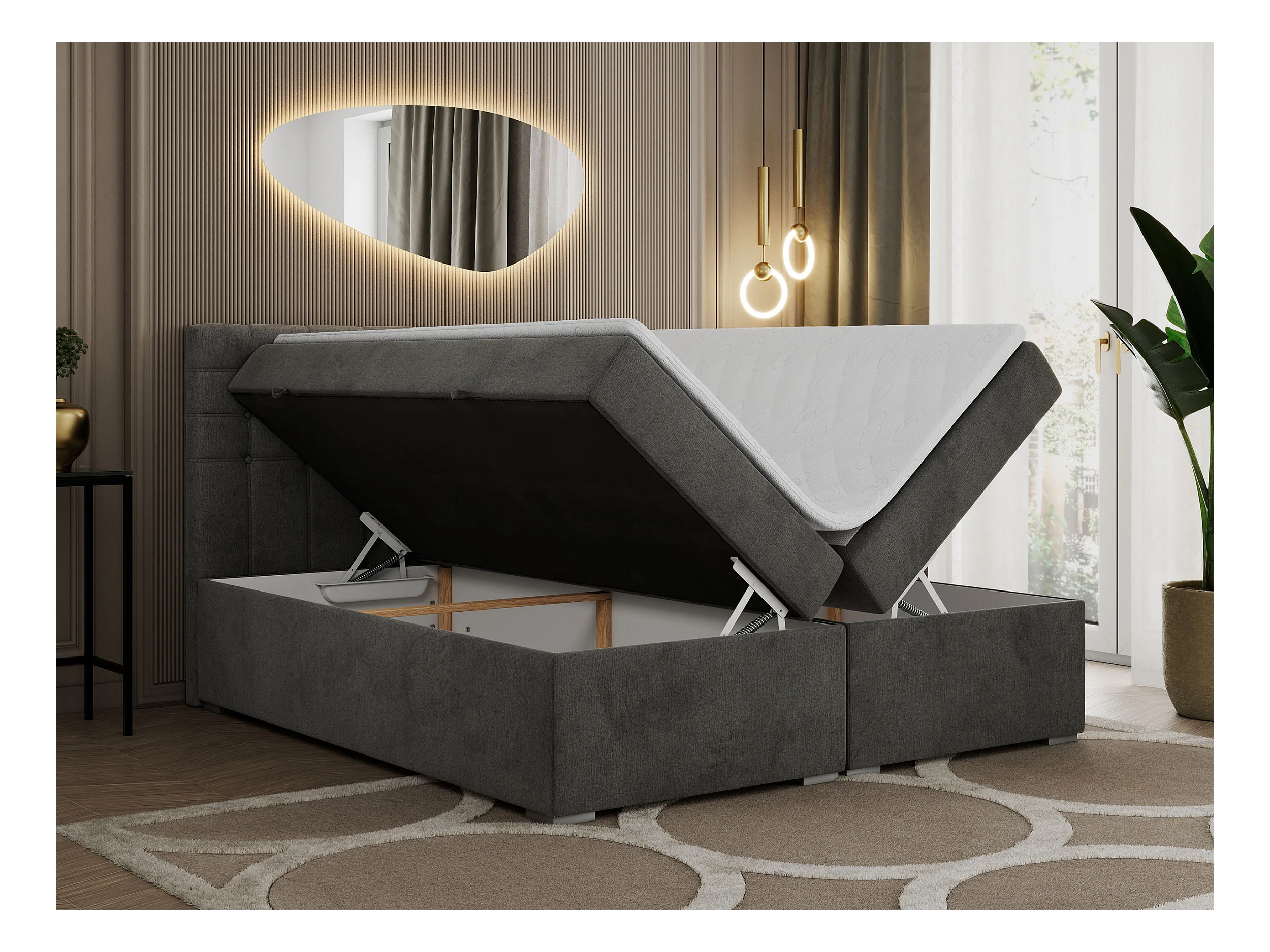 Boxspringbett SUSAN - mit gestepptem Kopfteil, zwei Bettkästen und Topper, gepolstertes Schlafzimmerbett - 160x200 cm - H4 - Dunkelgrau Velvet