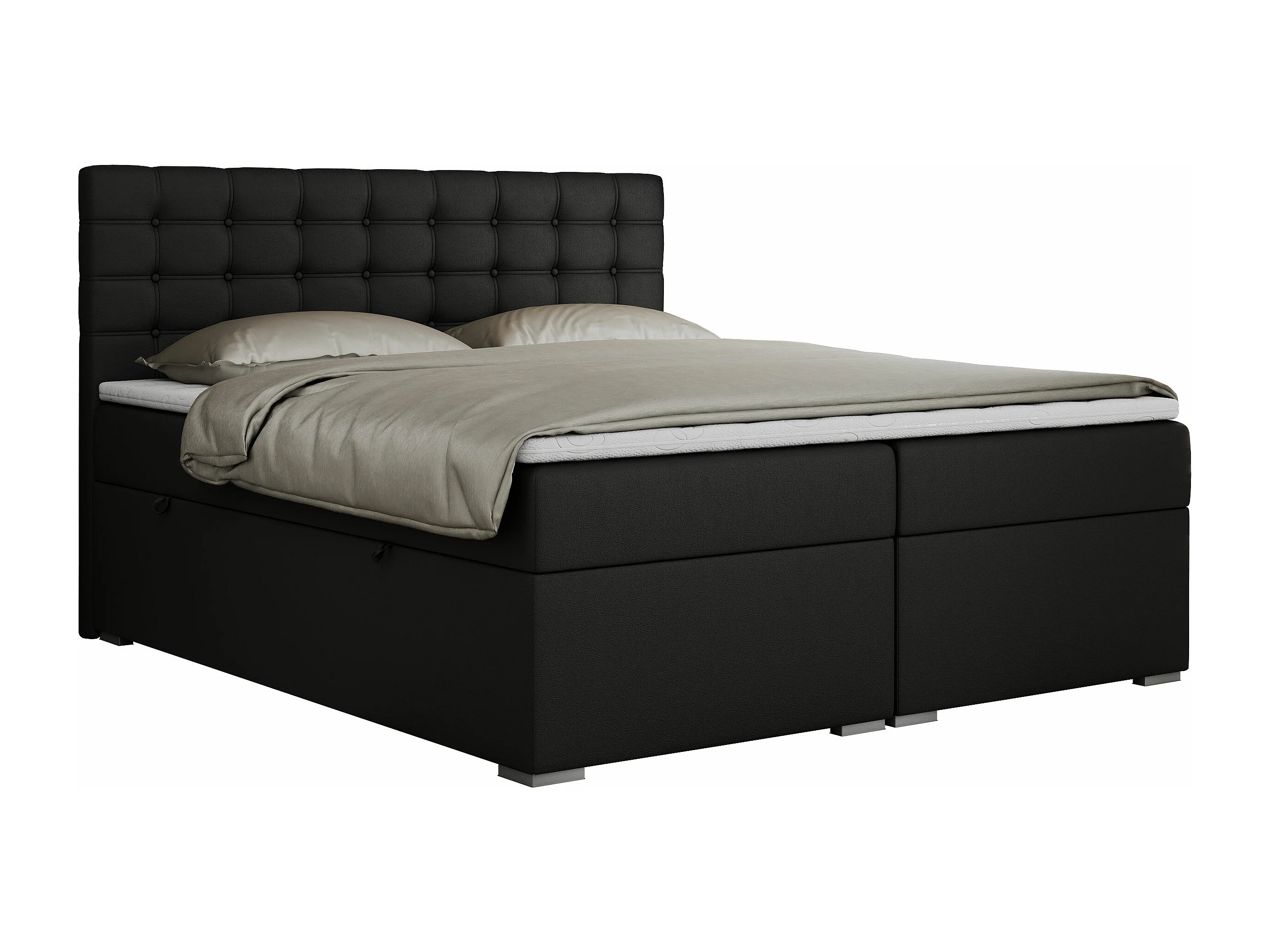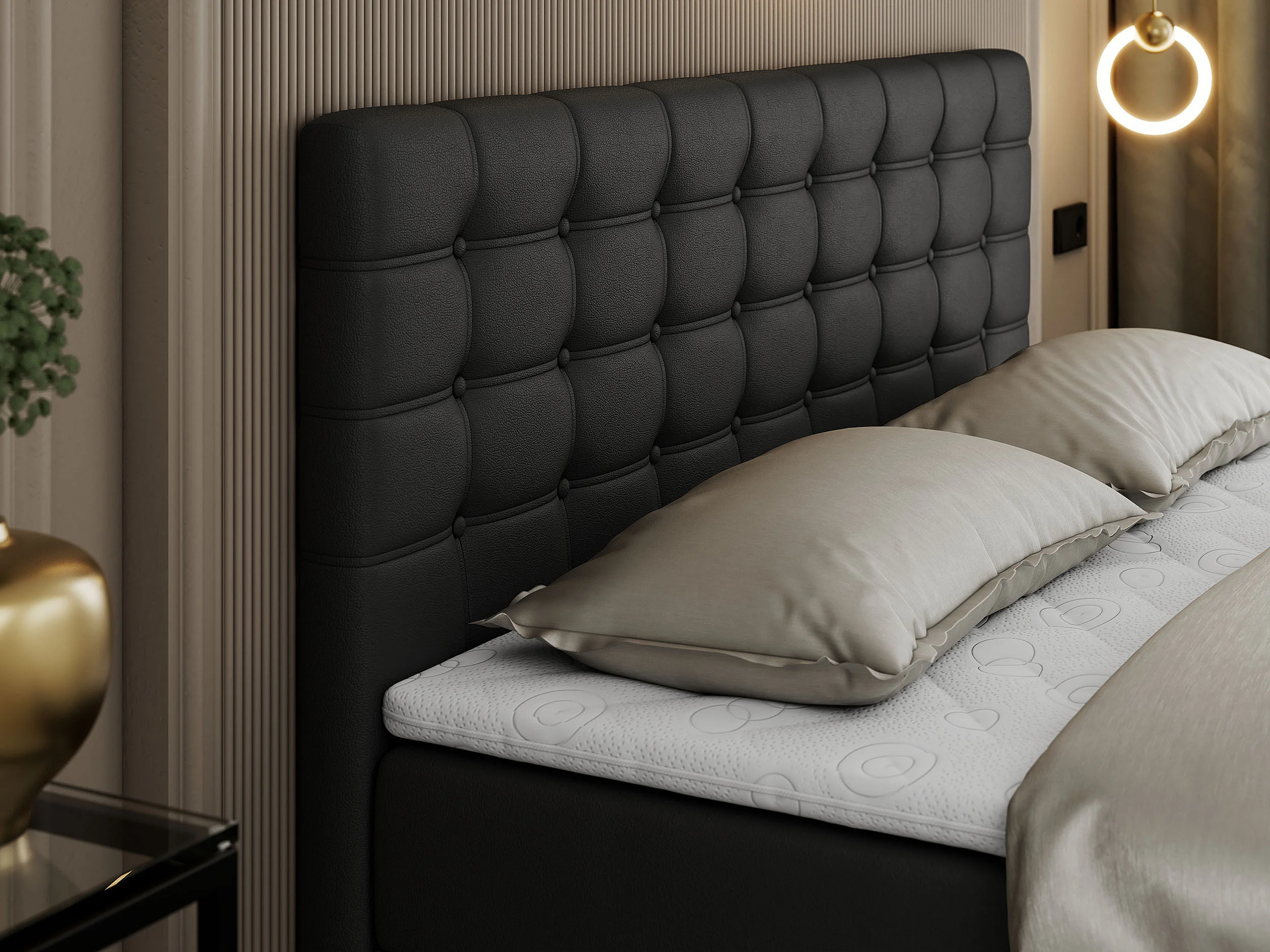 Boxspringbett SUSAN - mit gestepptem Kopfteil, zwei Bettkästen und Topper, gepolstertes Schlafzimmerbett - 160x200 cm - H4 - Schwarz Kunstleder