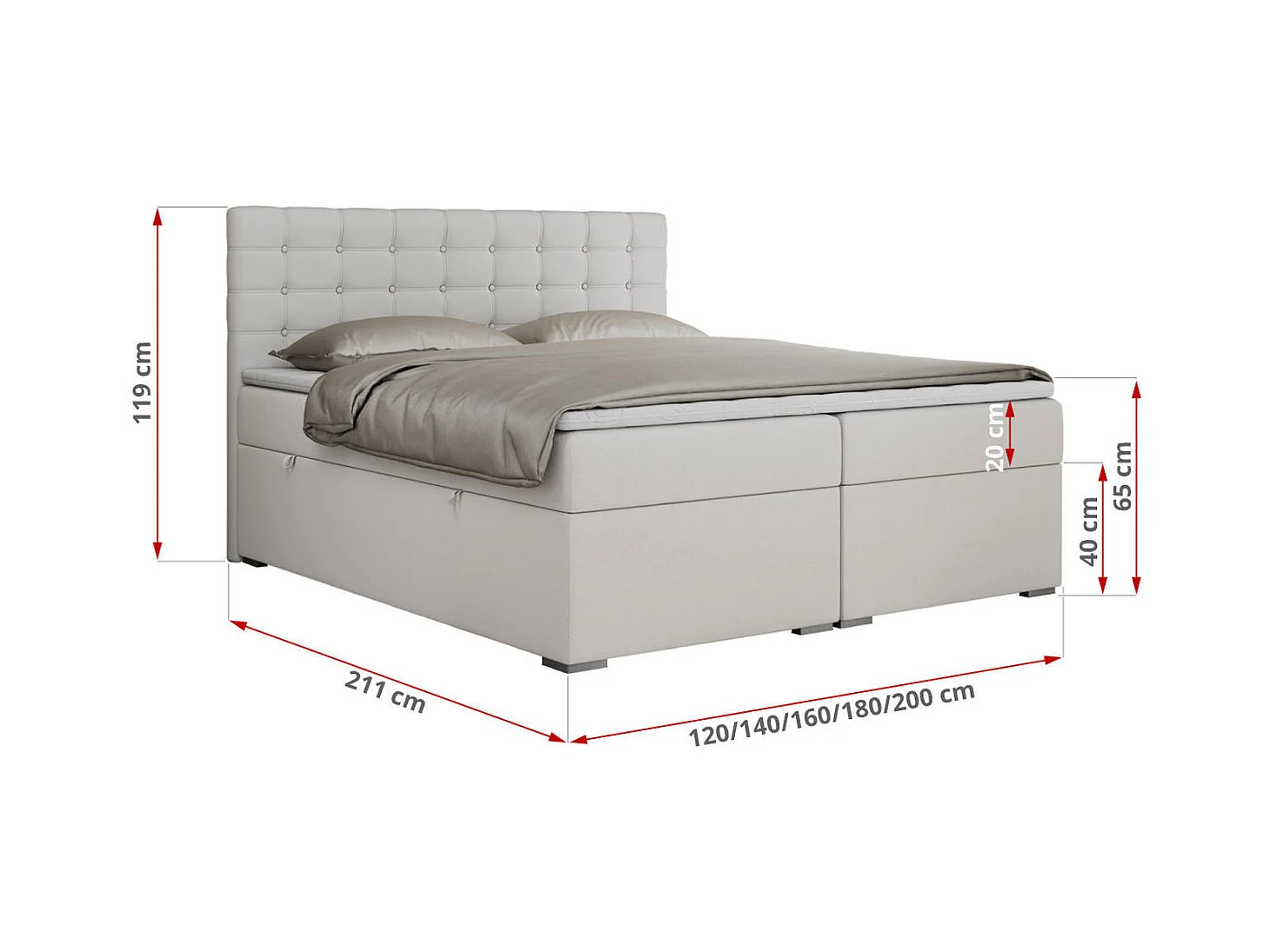 Boxspringbett SUSAN - mit gestepptem Kopfteil, zwei Bettkästen und Topper, gepolstertes Schlafzimmerbett - 160x200 cm - H4 - Weiß Kunstleder