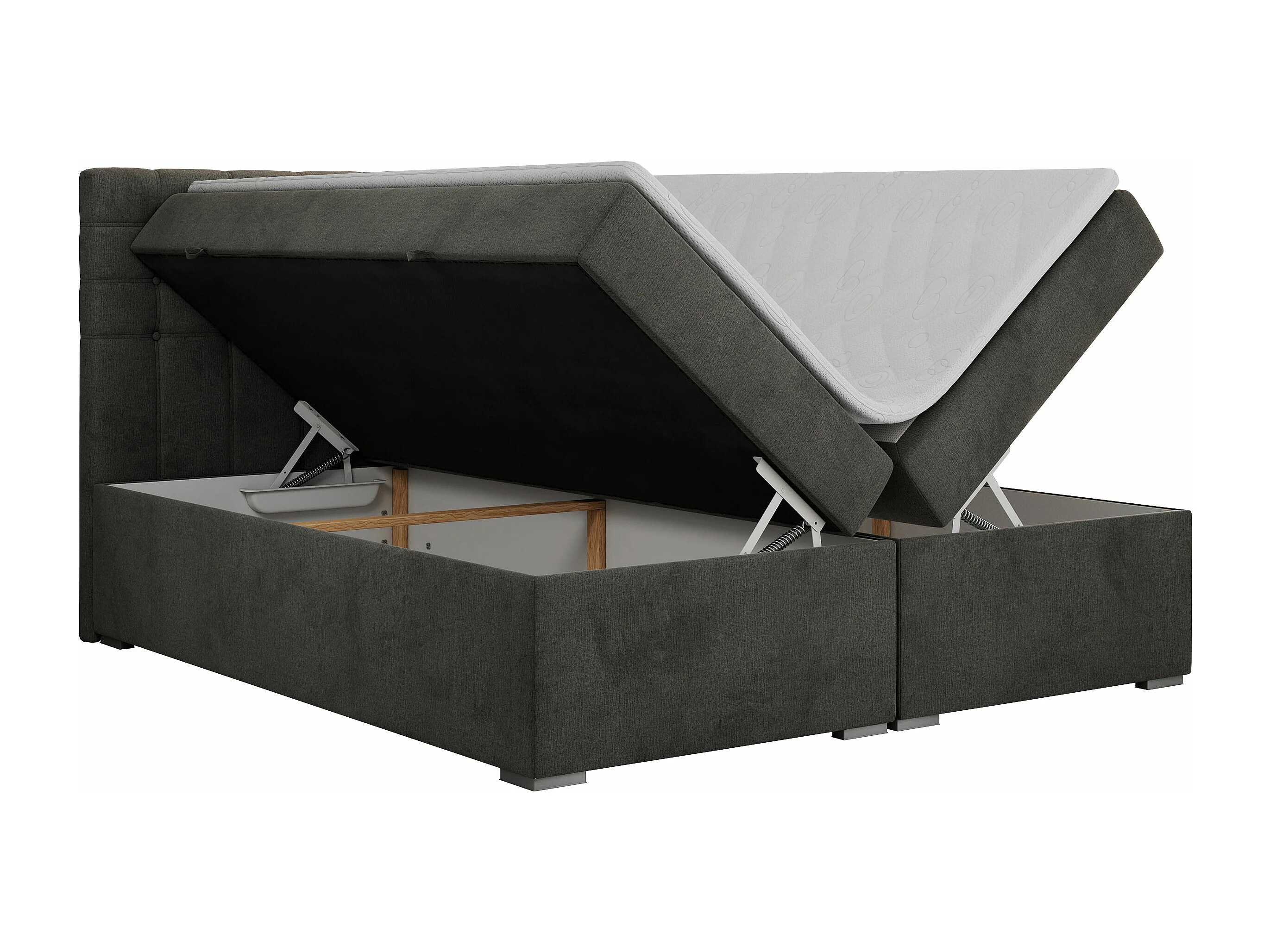 Boxspringbett SUSAN - mit gestepptem Kopfteil, zwei Bettkästen und Topper, gepolstertes Schlafzimmerbett - 180x200 cm - H3 - Dunkelgrau Velvet