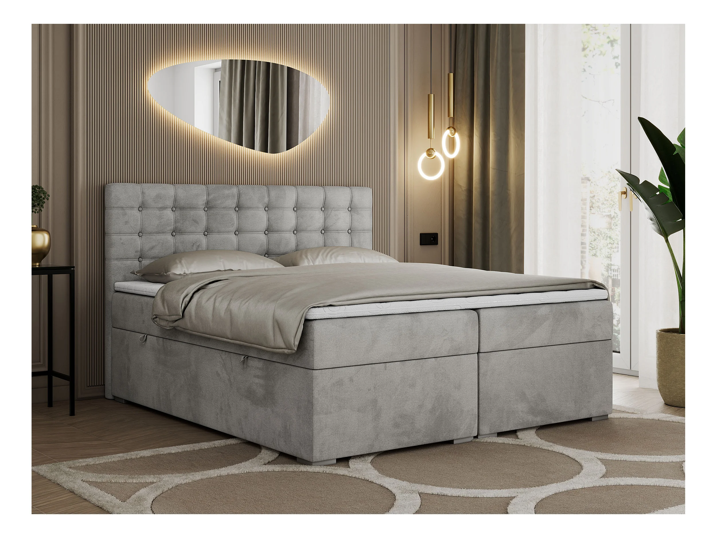 Boxspringbett SUSAN - mit gestepptem Kopfteil, zwei Bettkästen und Topper, gepolstertes Schlafzimmerbett - 180x200 cm - H3 - Hellgrau Velvet