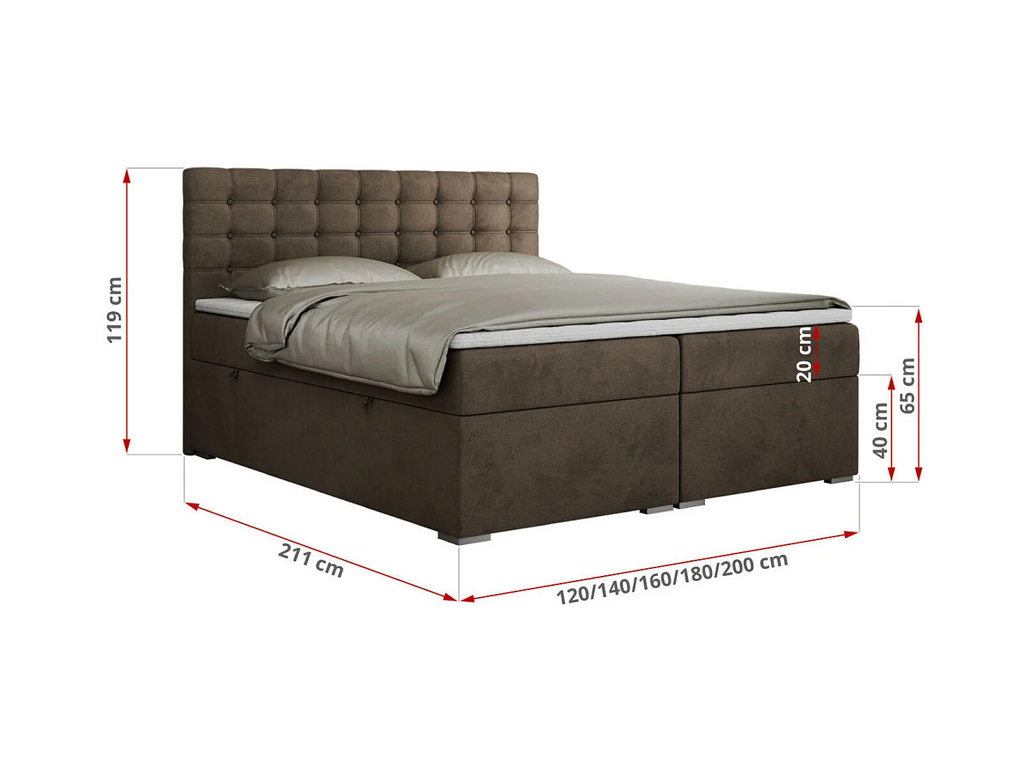 Boxspringbett SUSAN - mit gestepptem Kopfteil, zwei Bettkästen und Topper, gepolstertes Schlafzimmerbett - 180x200 cm - H4 - Braun Velvet