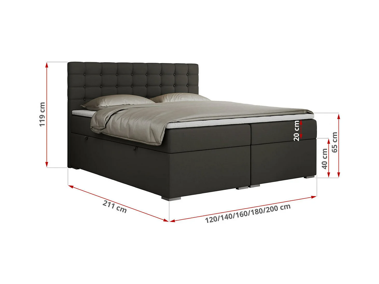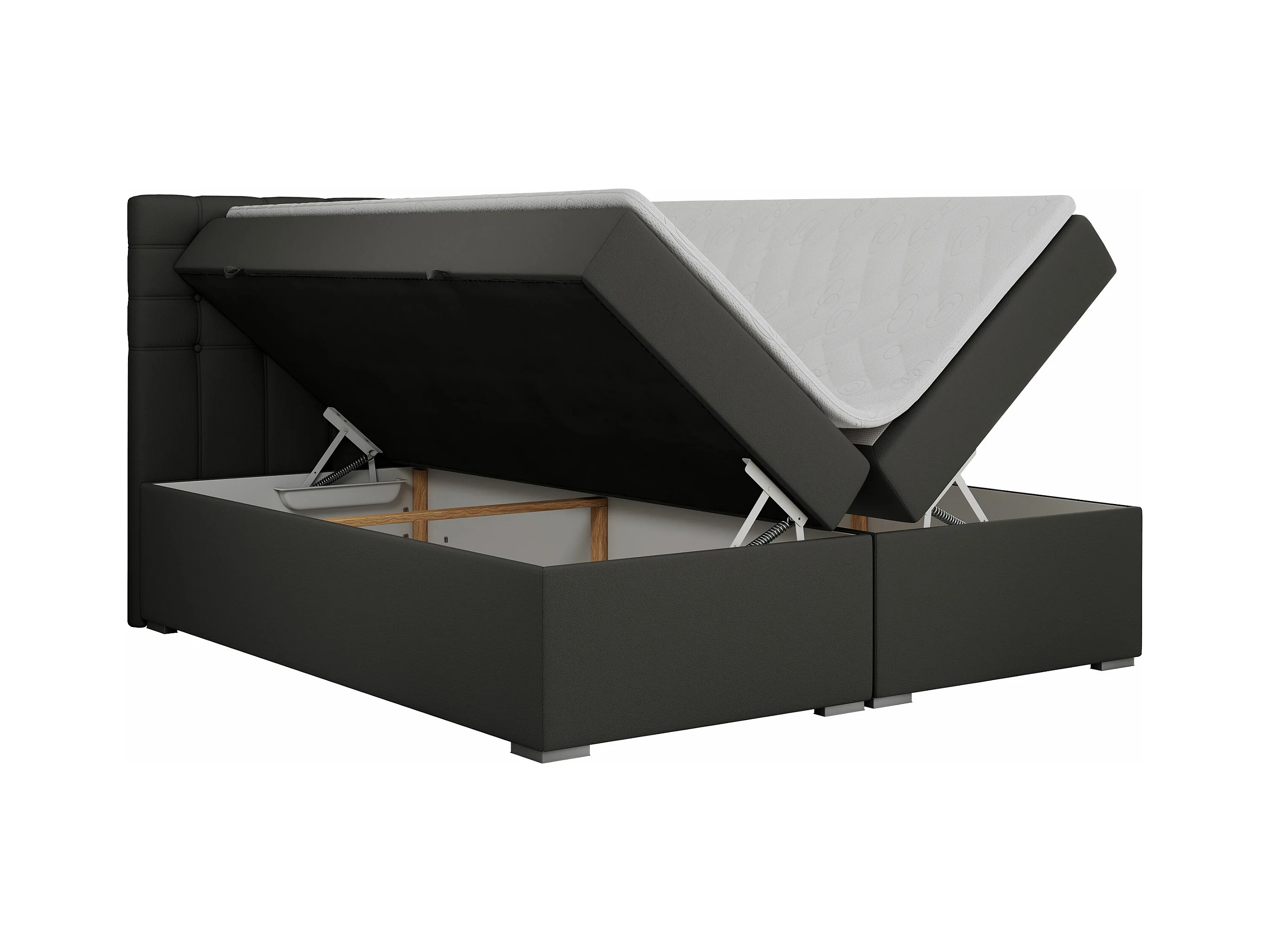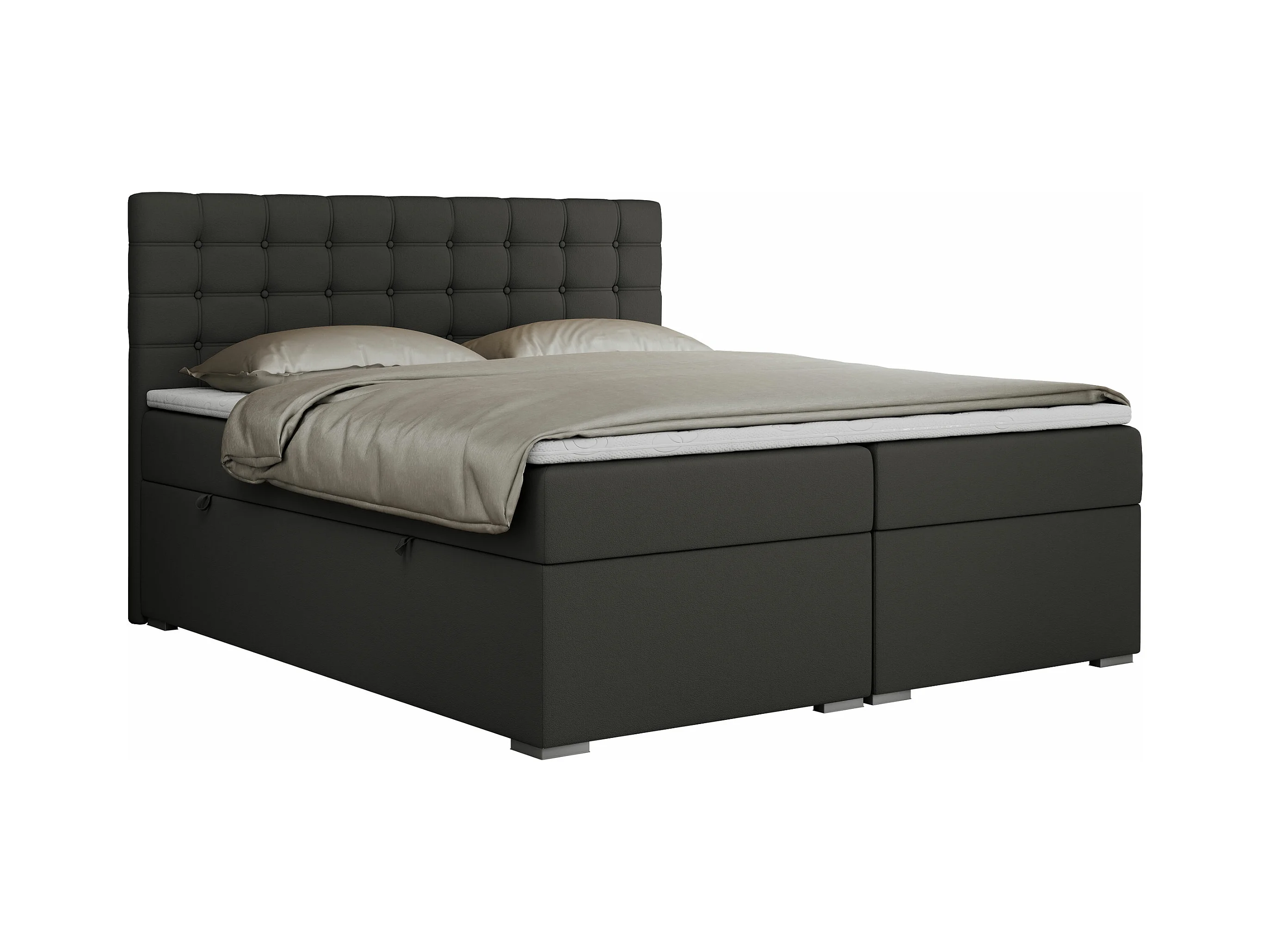 Boxspringbett SUSAN - mit gestepptem Kopfteil, zwei Bettkästen und Topper, gepolstertes Schlafzimmerbett - 200x200 cm - H3 - Dunkelgrau Kunstleder