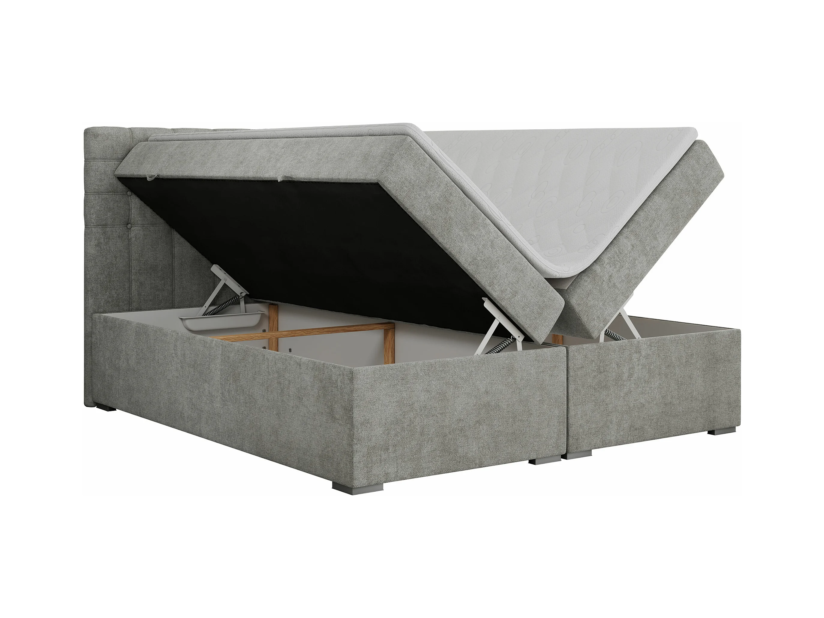 Boxspringbett SUSAN - mit gestepptem Kopfteil, zwei Bettkästen und Topper, gepolstertes Schlafzimmerbett - 200x200 cm - H3 - Hellgrau Stukture