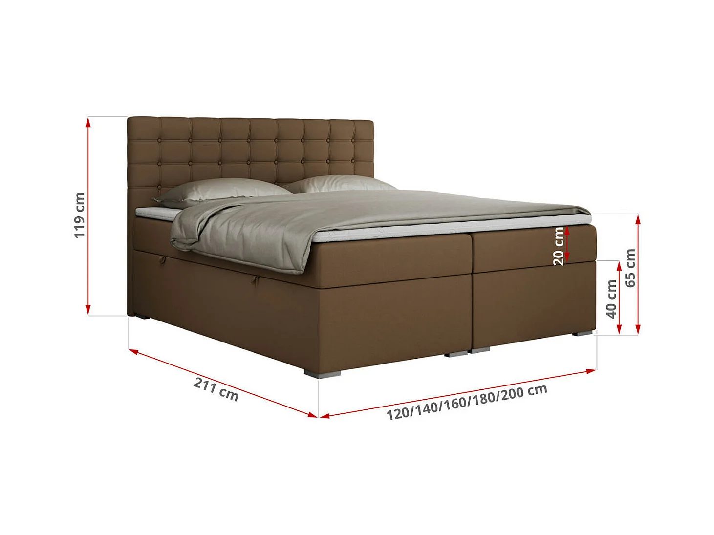 Boxspringbett SUSAN - mit gestepptem Kopfteil, zwei Bettkästen und Topper, gepolstertes Schlafzimmerbett - 200x200 cm - H4 - Braun Kunstleder