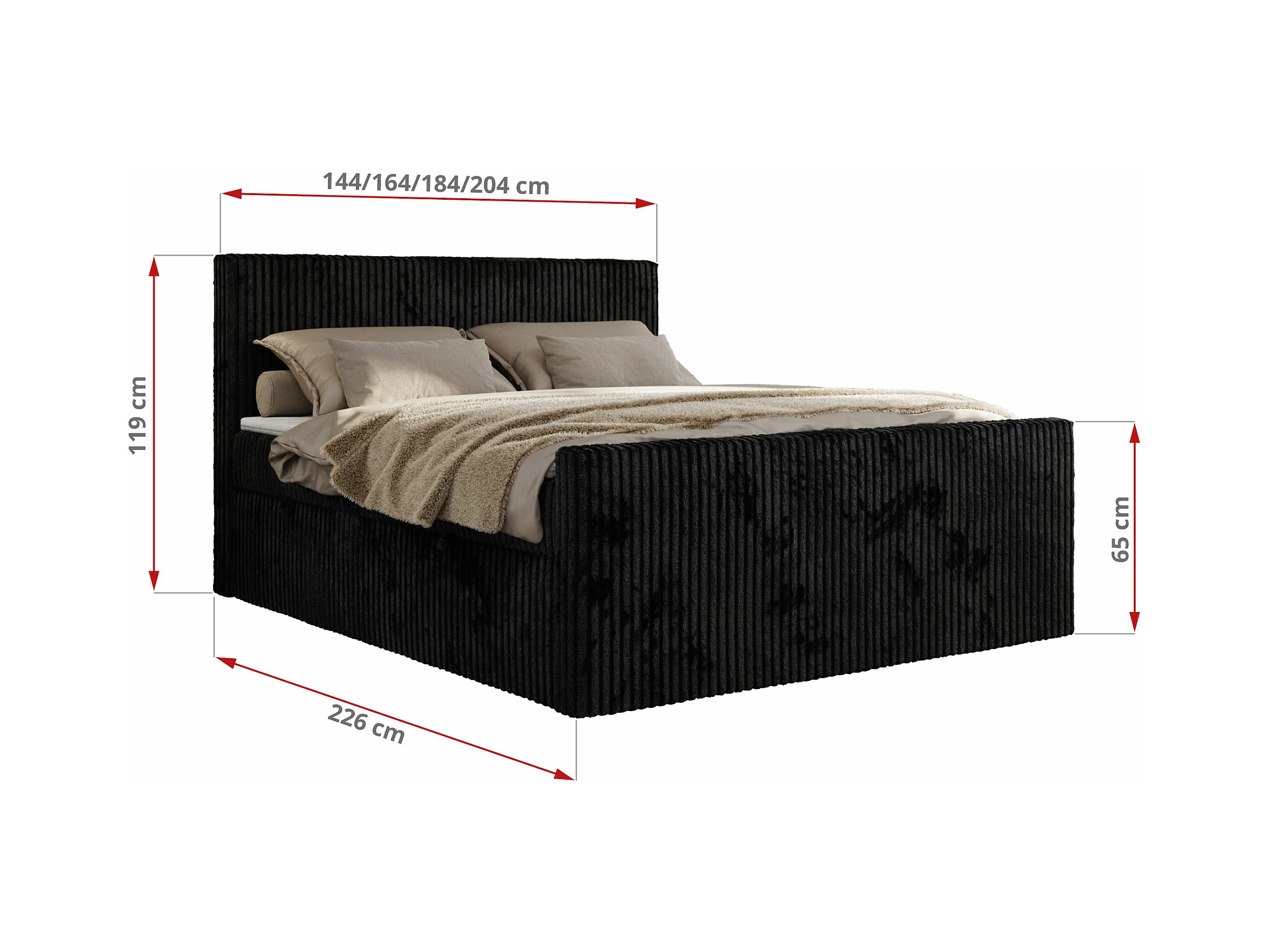 Boxspringbett TILIANO DUO mit gepolstertem Fußteil, Cord Bett, Multipocket-Matratze - 140x200 cm - H3 - Schwarz Cord