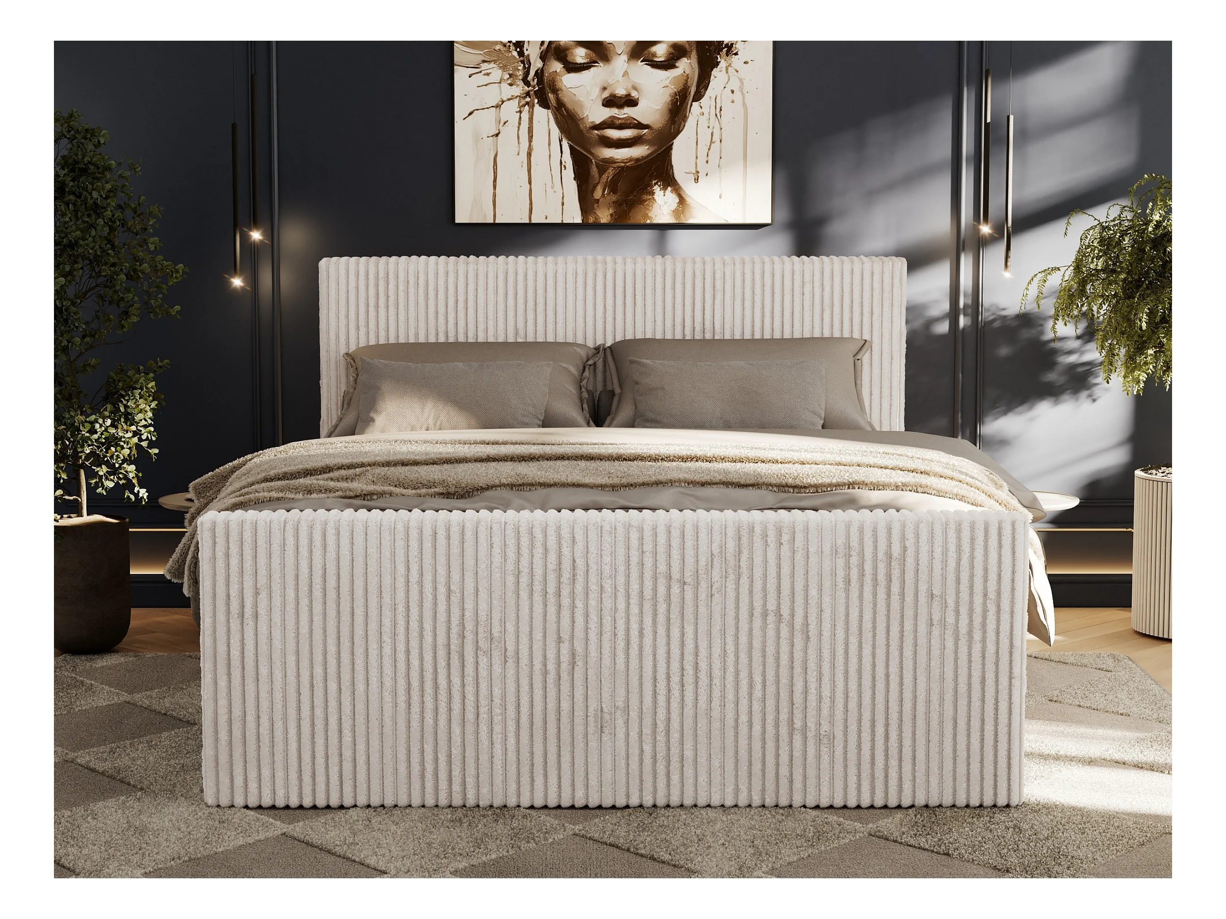 Boxspringbett TILIANO DUO mit gepolstertem Fußteil, Cord Bett, Multipocket-Matratze - 140x200 cm - H4 - Beige Cord