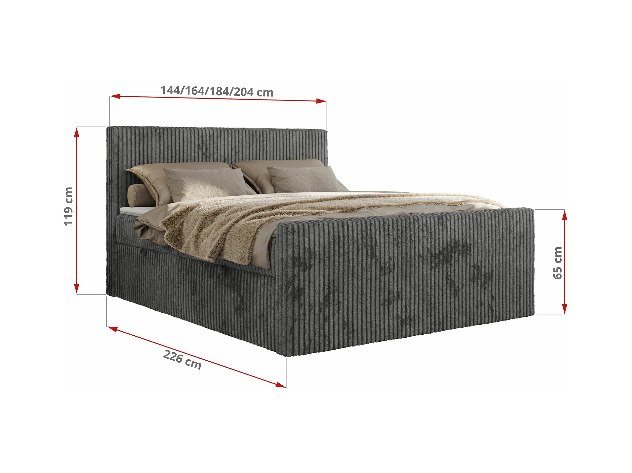 Boxspringbett TILIANO DUO mit gepolstertem Fußteil, Cord Bett, Multipocket-Matratze - 160x200 cm - H4 - Grau Cord