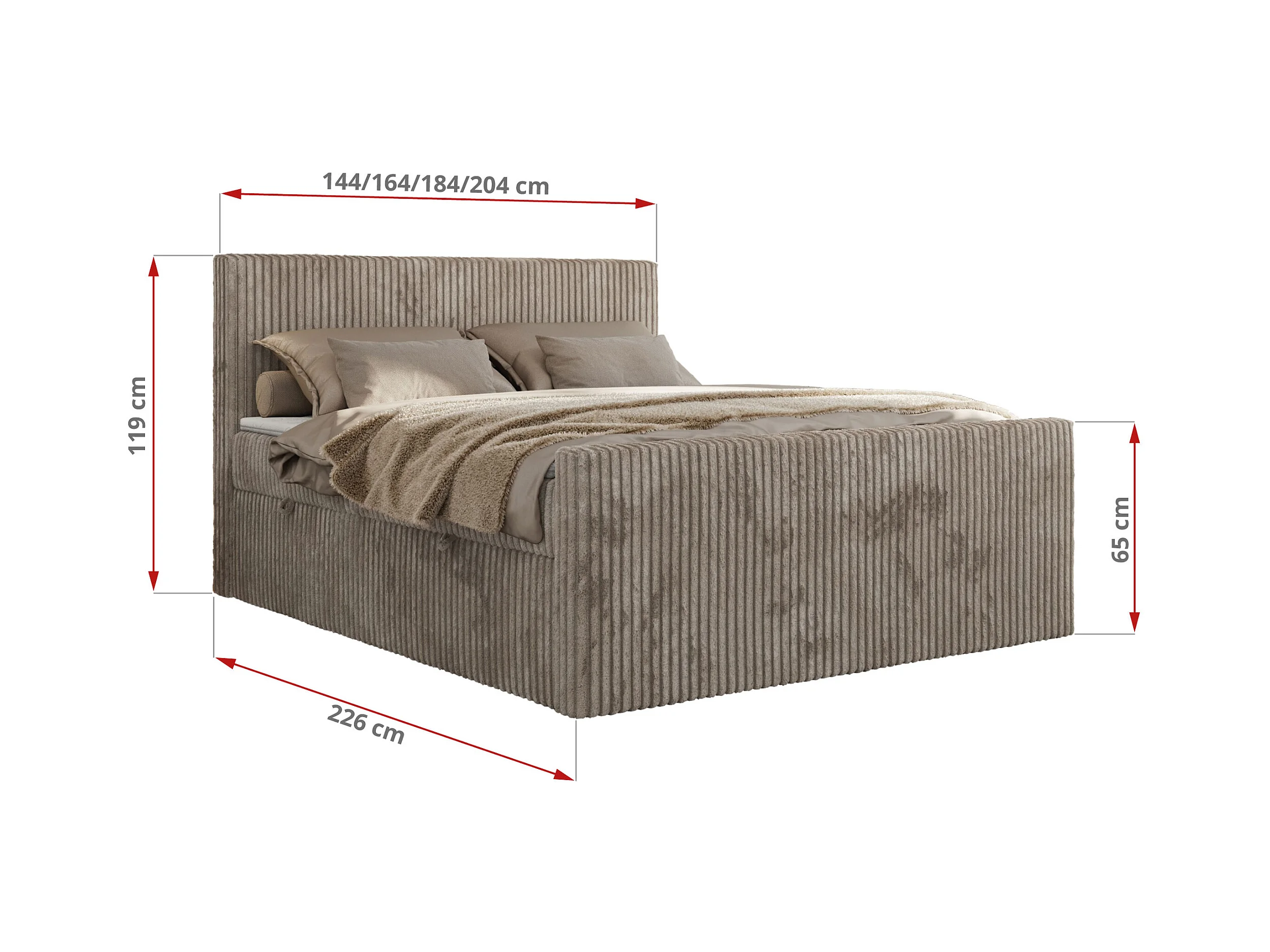Boxspringbett TILIANO DUO mit gepolstertem Fußteil, Cord Bett, Multipocket-Matratze - 160x200 cm - H4 - Hellbraun Cord