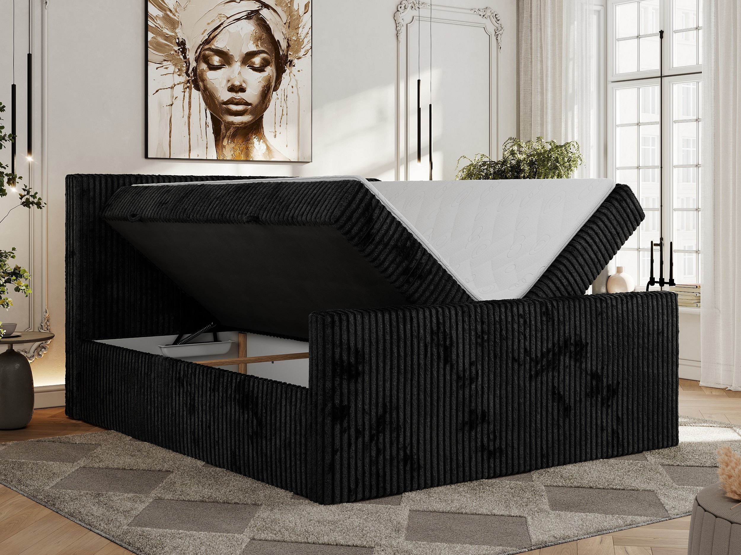Boxspringbett TILIANO DUO mit gepolstertem Fußteil, Cord Bett, Multipocket-Matratze - 160x200 cm - H4 - Schwarz Cord