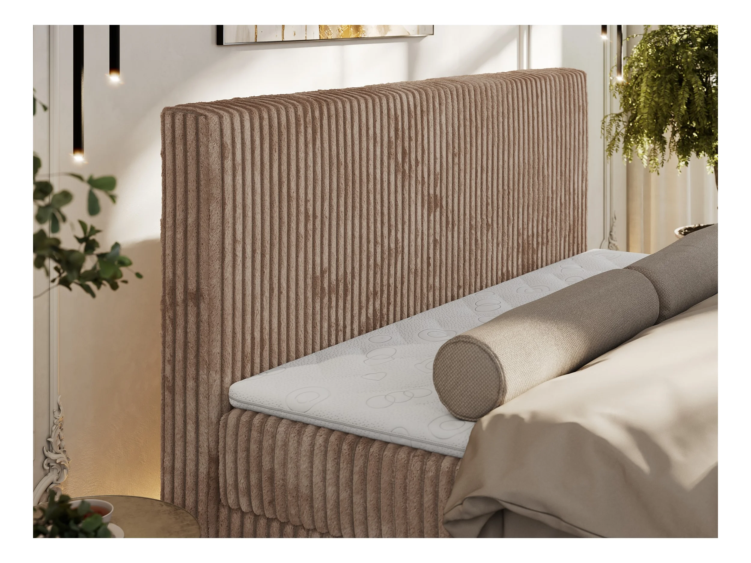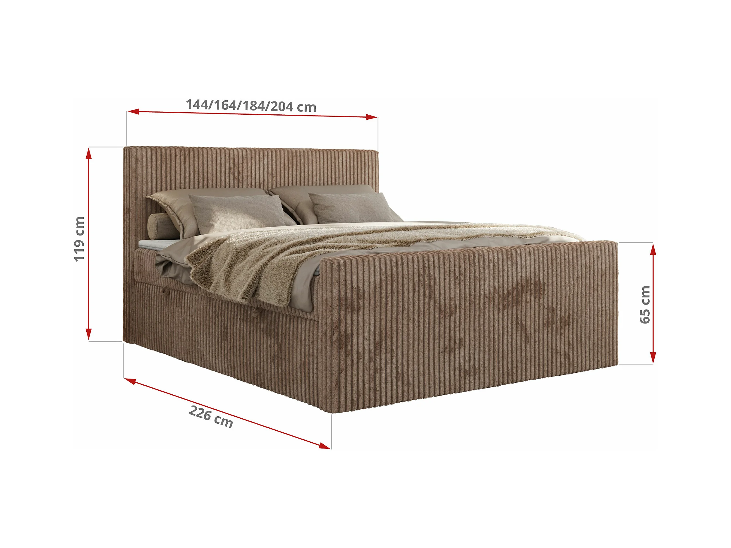 Boxspringbett TILIANO DUO mit gepolstertem Fußteil, Cord Bett, Multipocket-Matratze - 180x200 cm - H4 - Braun Cord