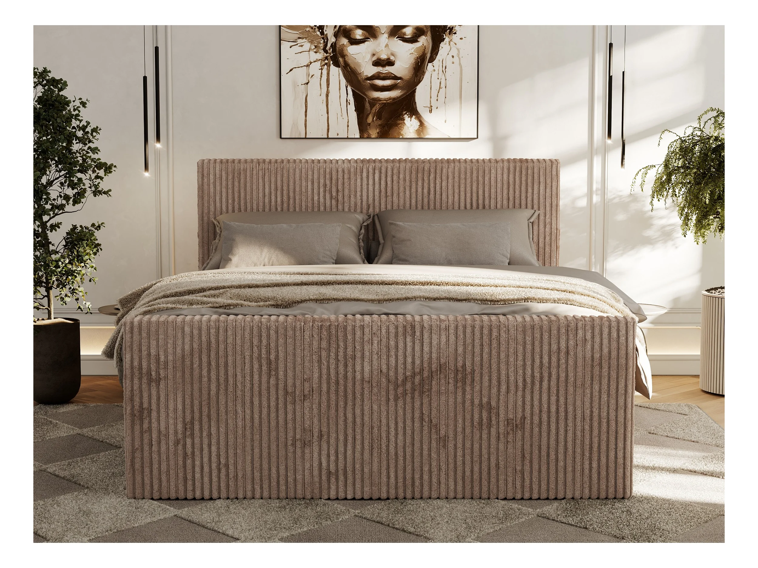 Boxspringbett TILIANO DUO mit gepolstertem Fußteil, Cord Bett, Multipocket-Matratze - 200x200 cm - H4 - Braun Cord