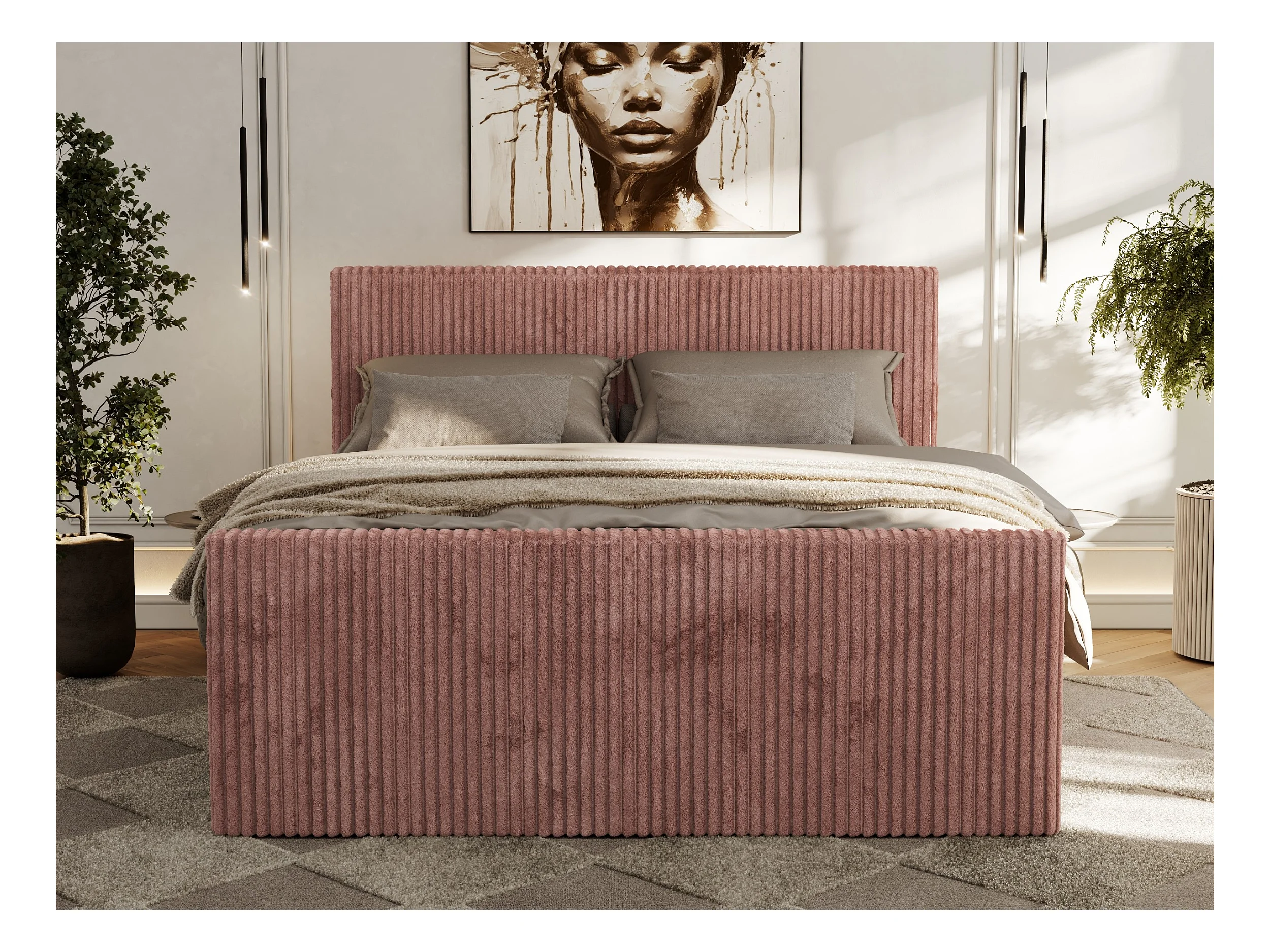 Boxspringbett TILIANO DUO mit gepolstertem Fußteil, Cord Bett, Multipocket-Matratze - 200x200 cm - H4 - Rosa Cord