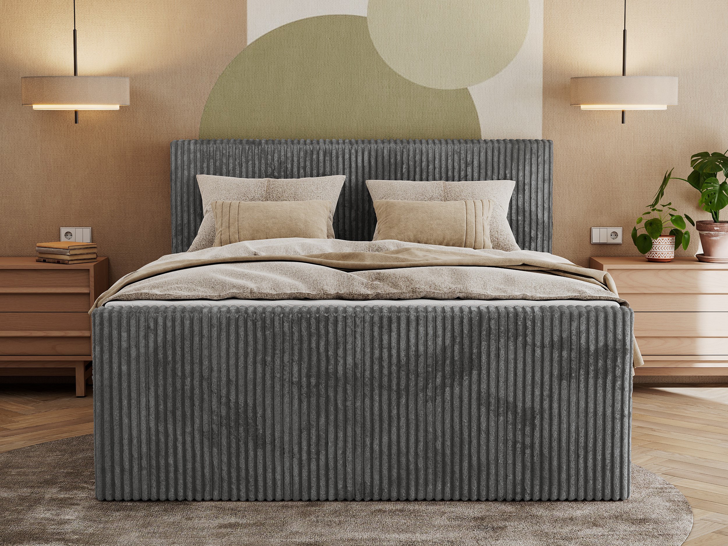 Boxspringbett TILIANO KING DUO, mit zwei Bettkästen, Cord Bett Multipocket-Matratze - 160x200 cm - H3 - Grau Cord